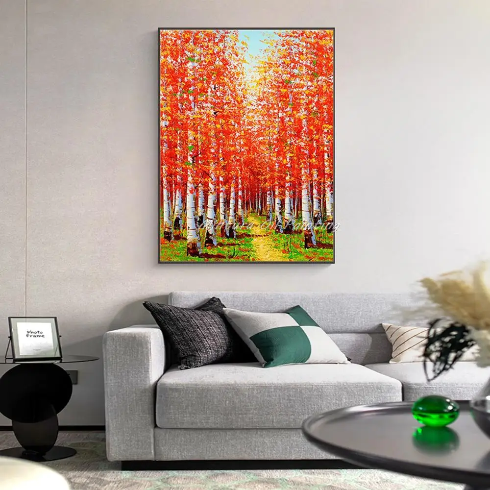 Описание товара:100% ручная роспись красные деревья пейзаж картина маслом на холсте Современная Настенная картина для гостиной домашний Декор без рамки.
