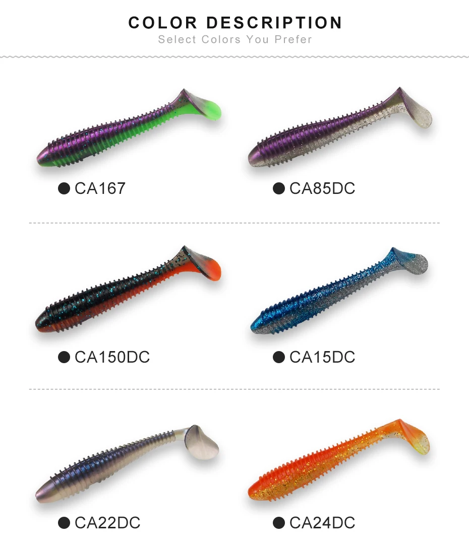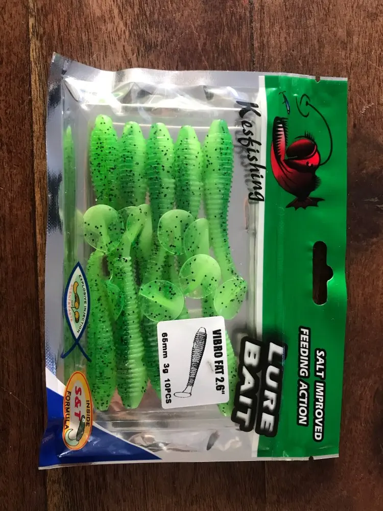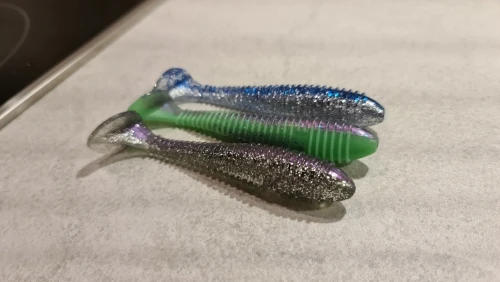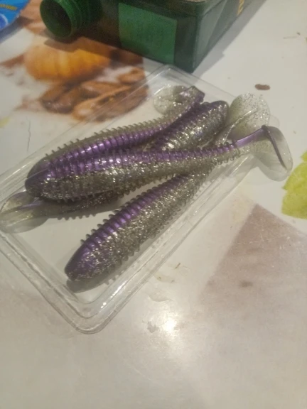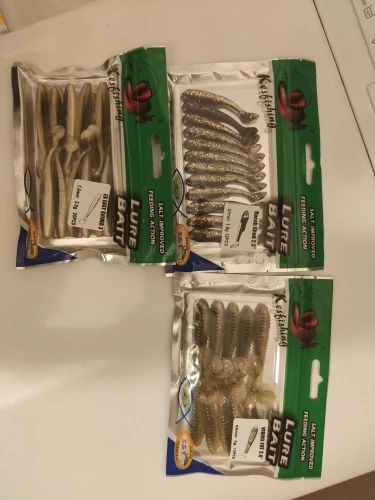 Эти приманки выглядят отлично. Они мягкие, но не слишком мягкие. Материал хороший. В них также есть некоторые рыбы или другие ароматы морской пищи, встроенные в резину. Я надеюсь, что надену на них красивую рыбу.