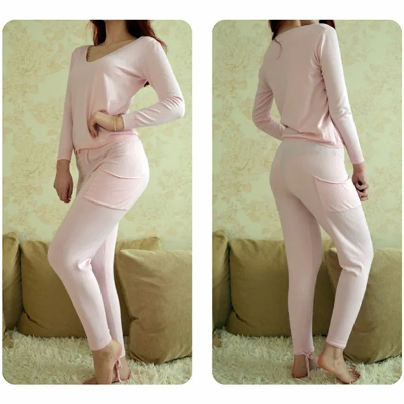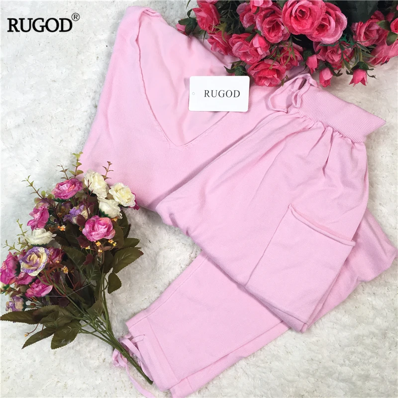 Женский трикотажный костюм Rugod, Однотонный свитер с V-образным вырезом и штаны, повседневный осенний теплый Трикотажный костюм для сна, размера плюс