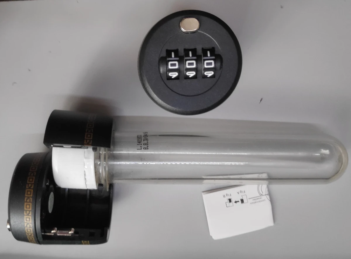 Устройство действительно отличного качества! НО...если только хорошая память на пароль!))) иначе придётся бутылку разбивать. По умолчанию пароль 000, но если нужно сменить пароль, то я на фото указал путь смены пароля: 1)перемещаем стальной язычок из А на B; 2)закрываем пробку; 3)набираем нужный запоминающийся пароль; 4)открываем и перемещаем стальной язычок обратно в положение А; 5) Записываем или накалываем пароль на плечо.
