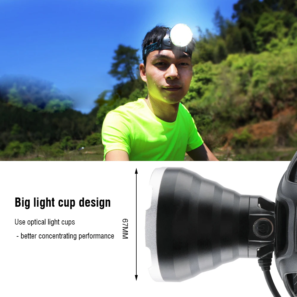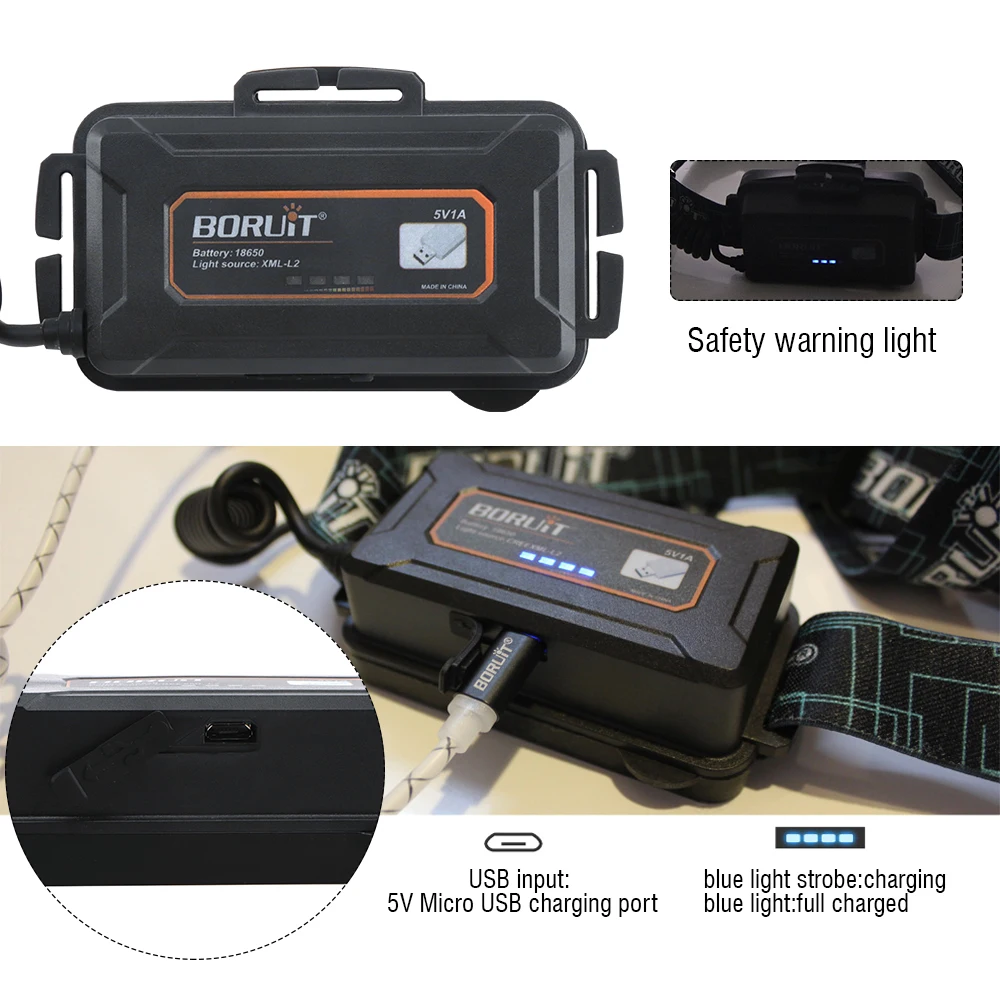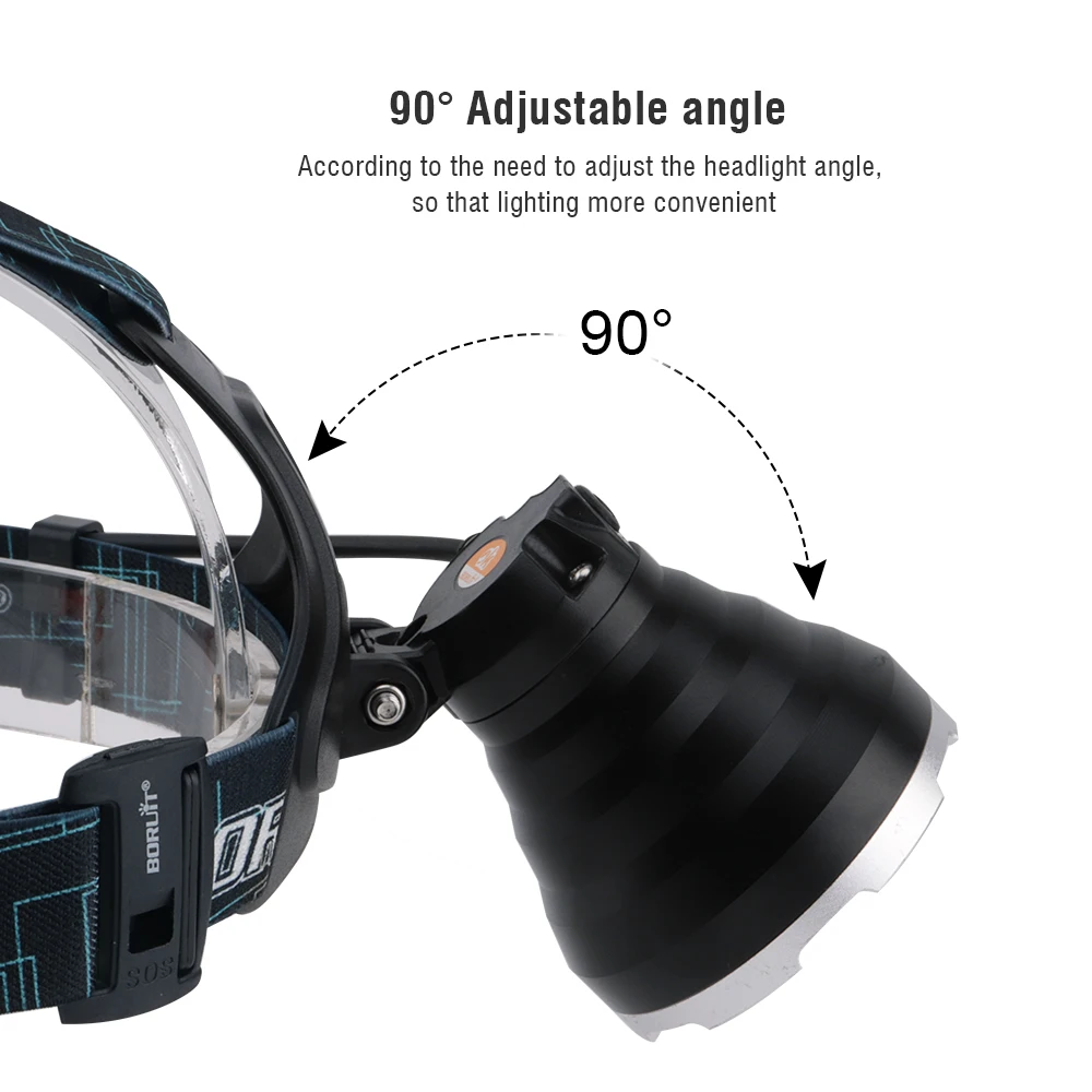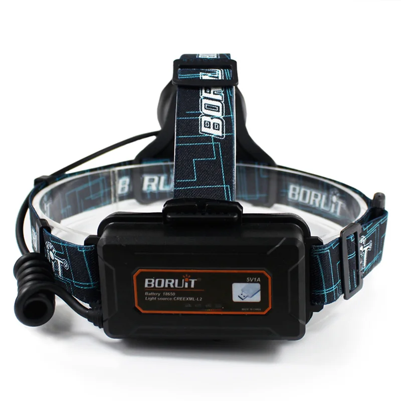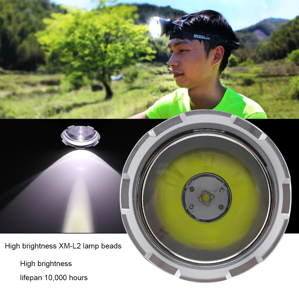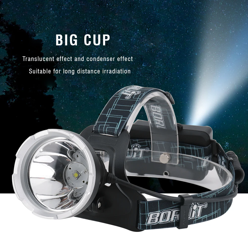 Налобный фонарь BORUiT B10 XML L2, светодиодный, с большой чашей, зарядкой от USB, водонепроницаемый с памятью, 18650