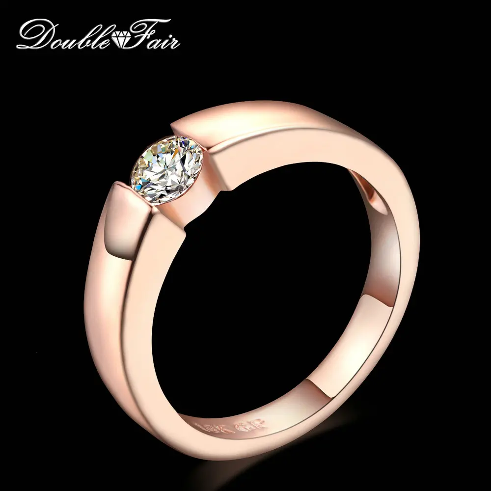 Обручальные кольца для женщин, с камнем в огранке принцессы, цвет белоерозовое золото, ювелирные изделия, DFR400