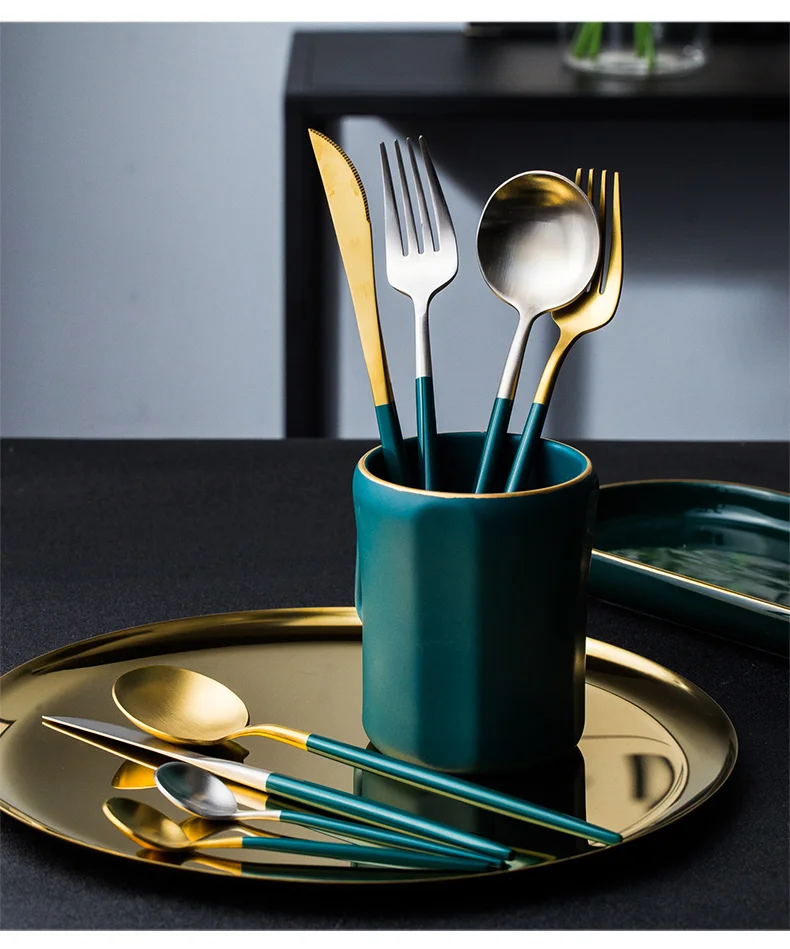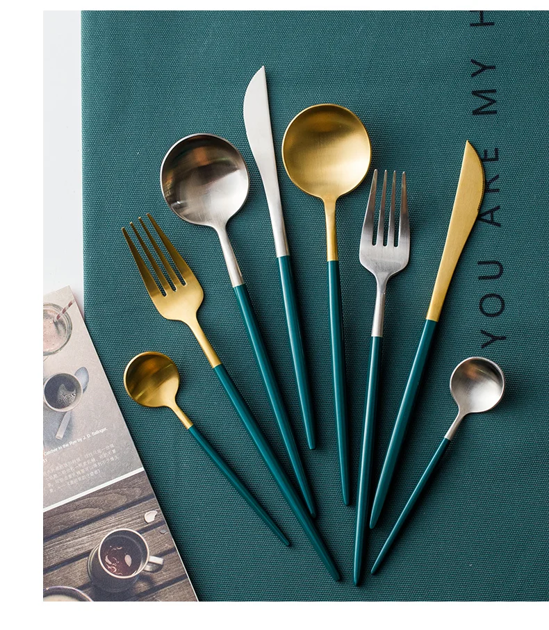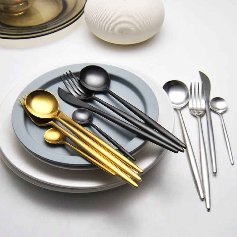 Набор из 24 предметов, матовая нержавеющая сталь толщиной 1810, черное золото, серебро, высококачественная посуда, нож для стейка, ложка, вилка, кофейная ложка, набор, безопасный для мытья в посудомоечной машине