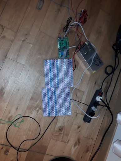 Пакет хороший (не нравится ebay) попробуйте 2 экрана Работает как очарование с 2 другими панелями 64x64. Яркость очень хорошая и не отличается от других. Фотографии для тестирования. Надеюсь, они прослужат долго. Электрический кабель (× 1) и ленточные кабели (x2) без битых пикселей.