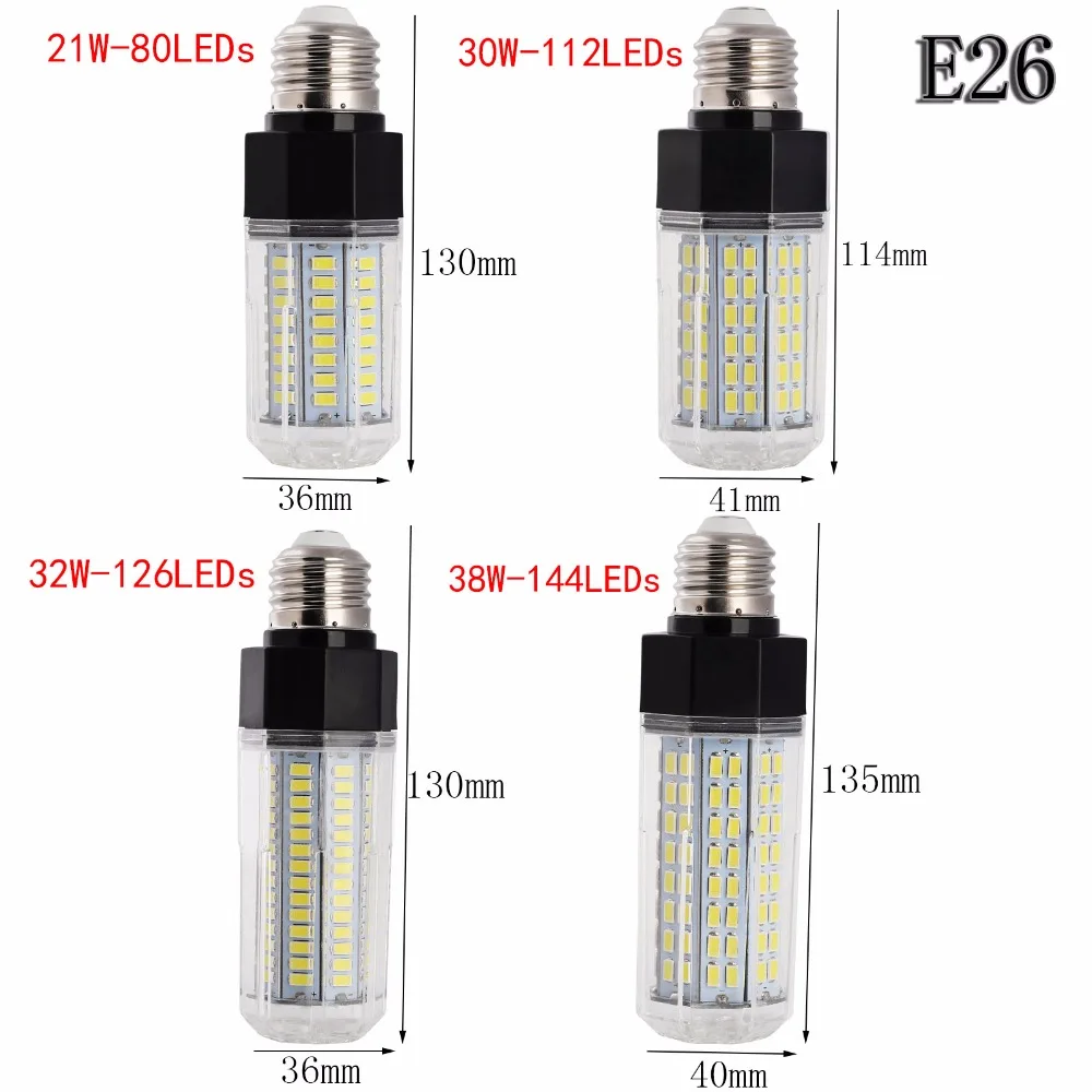 Супер яркий Диммируемый E26 E27 E12 E14 Светодиодный светильник кукурузы лампа 21 Вт 30 Вт 32 Вт 38 Вт 5730 SMD белый теплый/холодный белый