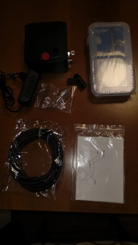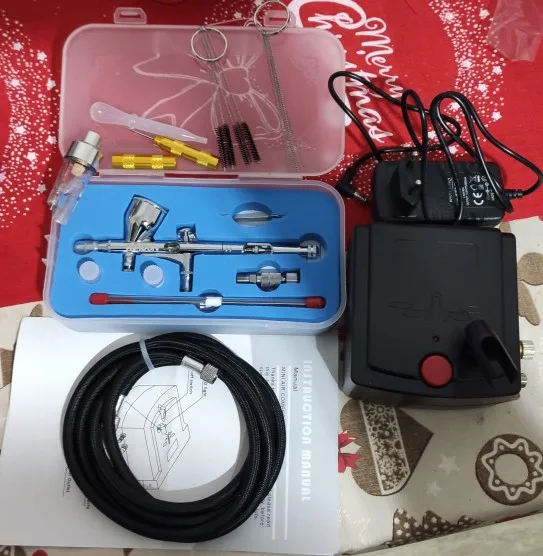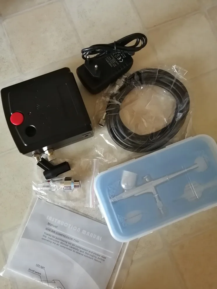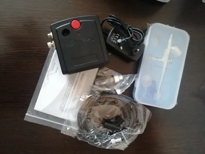 Заказывал только компрессор. Быстрая доставка. До алтайского края дошла за 11 дней. проверил. работает. позже отпишусь как в работе себя покажет. Заказывал для аэрогрофа красить рыболовные приманки.