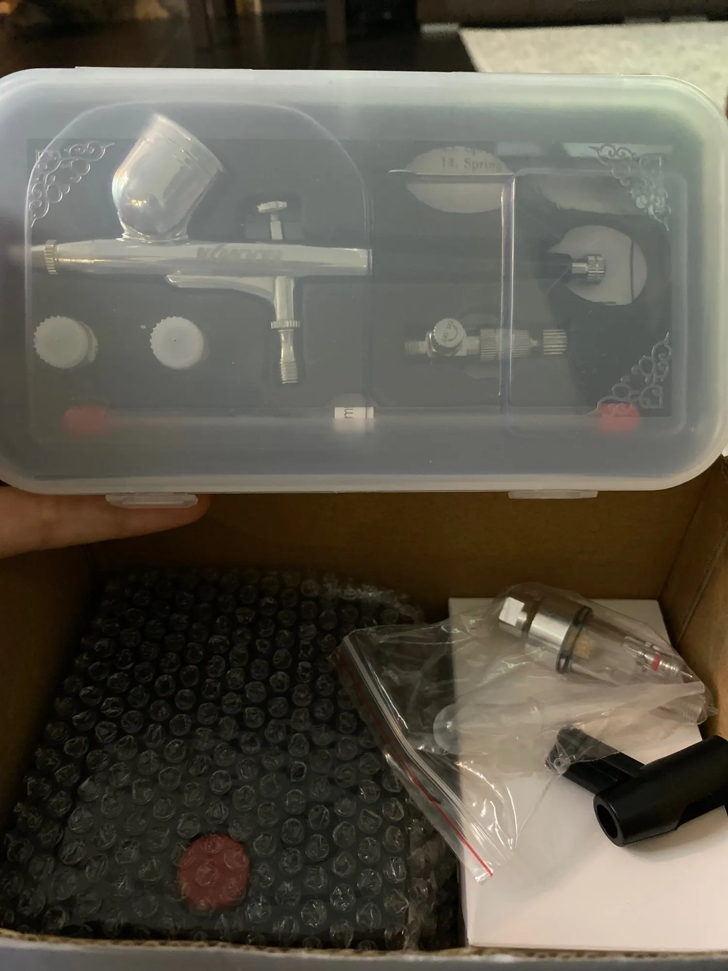 Аэрограф пришёл, все целое, работает отлично. Спасибо