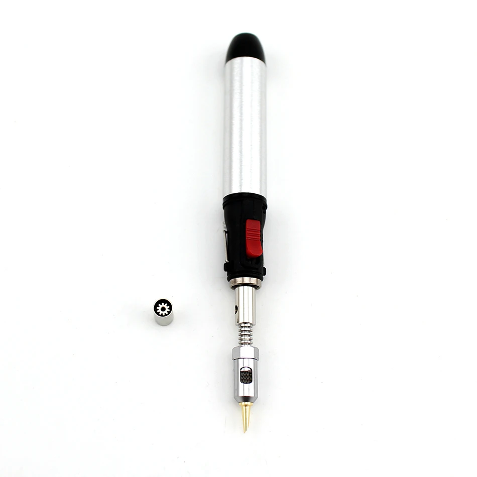 Этот паяльник с бутановым газом отличается высокой производительностью и превосходной производительностью. Его можно использовать как обычный паяльник, тепловую пушку или пламенную пушку, очень практично. Особенности:Дизайн в стиле ручки уникальный, щедрый и элегантный.Высокая емкость и отличная производительность.Легко для розжига, быстрого нагрева и долговечного использования.Компактный размер, легкий и портативный для переноски.Используйте газ в качестве его мощности без ограничения напряжения и провода.Можно использовать как обычный паяльник, тепловую пушку или пламенную пушку, очень практично.Металлическая ручка отличается высокой текстурой и приятной на ощупь. Характеристики:Цвет: серебристый + черныйМатериал: пластикЕмкость наполнителя: 12 млТемпература пламени: 1300 °CТемпература паяльника: 450 °CВремя использования: 50-80 минутВес: 63 г/2,22 унцииРазмеры: 1,9*16,7 см/0,75*6, 57 дюймов (диаметр. * H)Посылка: 19,7*8*2 см/7,75*3,15*0,79 дюймов (Д * Ш * В)Вес посылка: 78 г/2,75 унции Примечание:Продукт еще не заполнен газом, пожалуйста, Пополните его перед использованием. Комплектация:1 * паяльник инструмент1 * паяльное жало