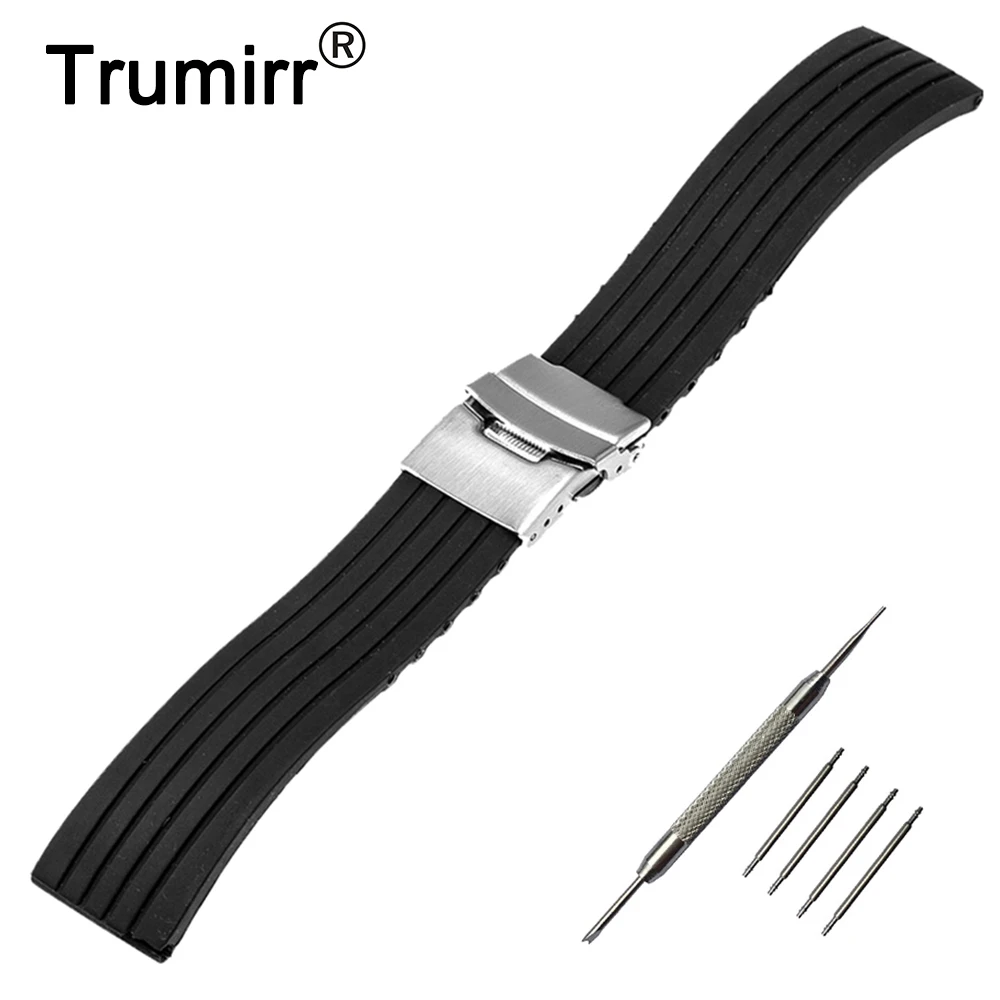 Ремешок для часов из силиконовой резины 17 мм 18 мм 19 мм 20 мм 21 мм 22 мм 23 мм 24 мм, браслет из нержавеющей стали с защитной пряжкой для Tissot ( T035 / T050 / PRC 200 T055 / T097 / T099, И т. д.)