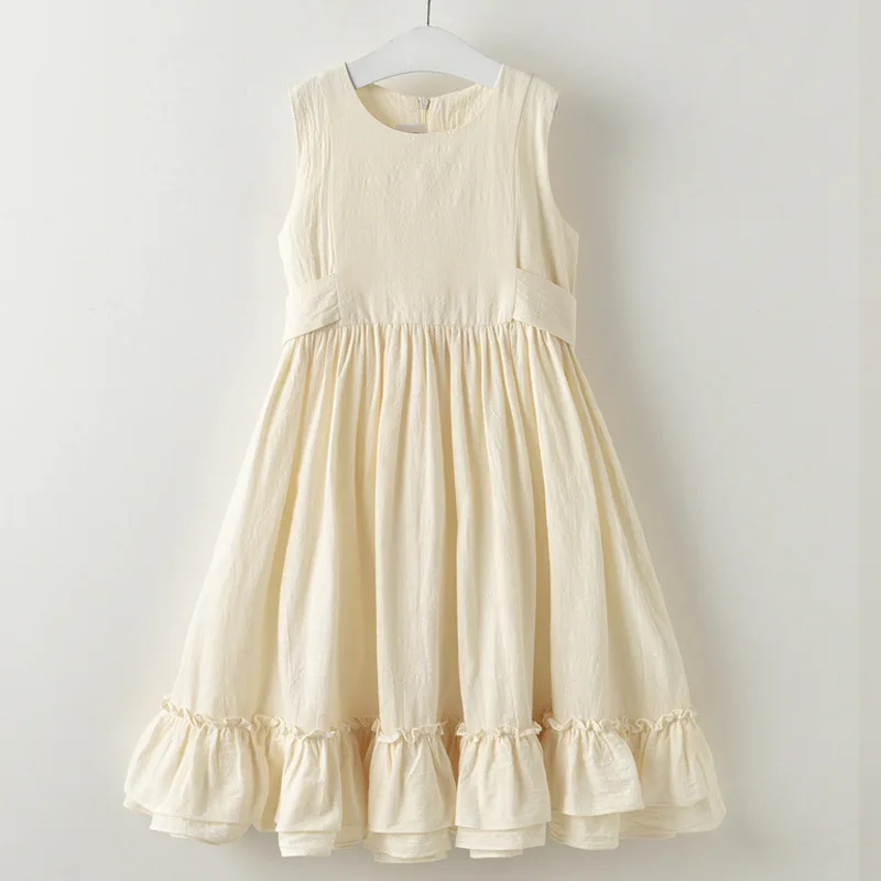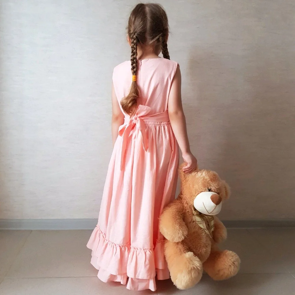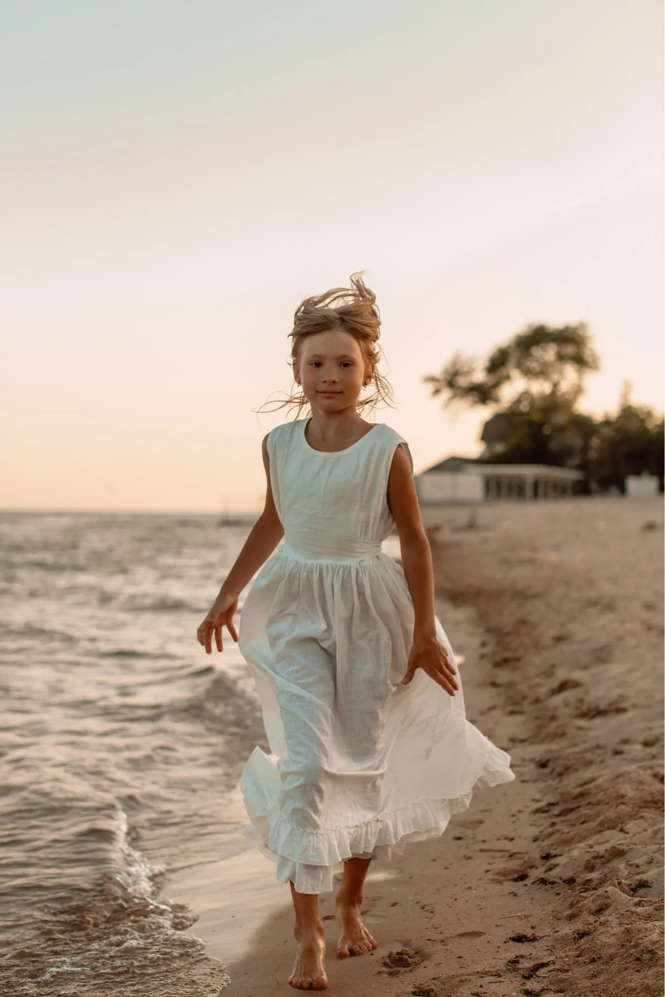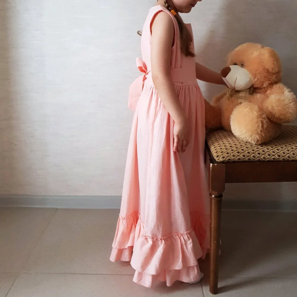 Новинка лета 2019, длинное хлопковое льняное платье для девочек, детские платья принцессы без рукавов, милый Цельный Детский сарафан для девочек 3- 14 лет