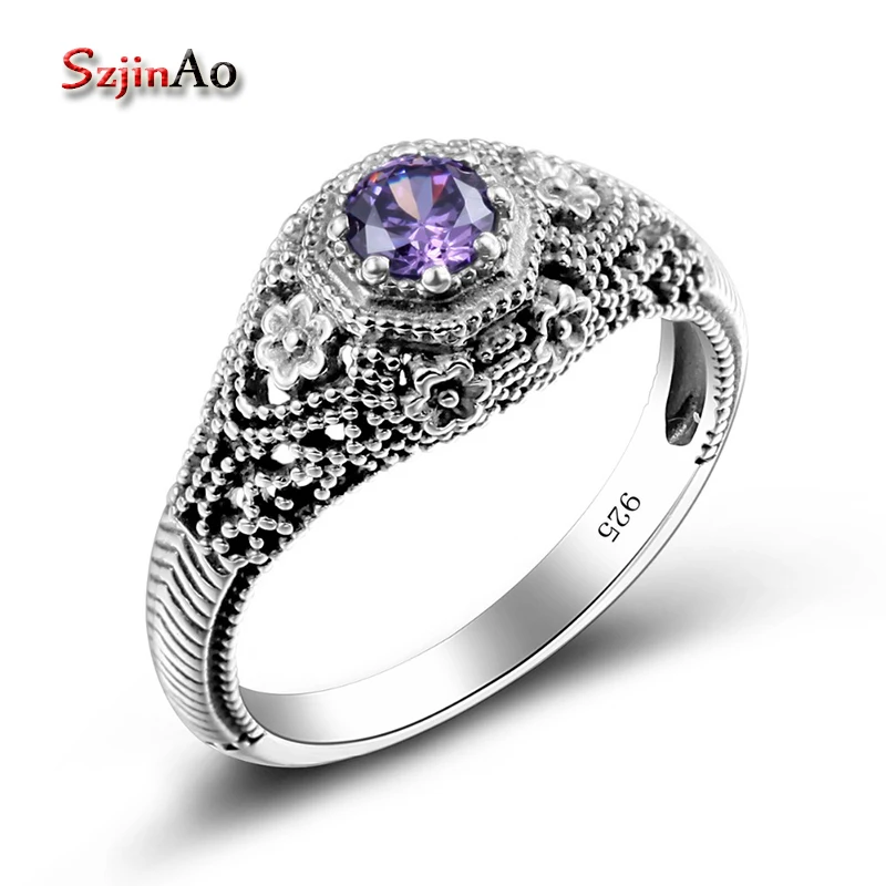 Szjinao Настоящее серебро 925 для женщин с аметистом кольцо Обручал...