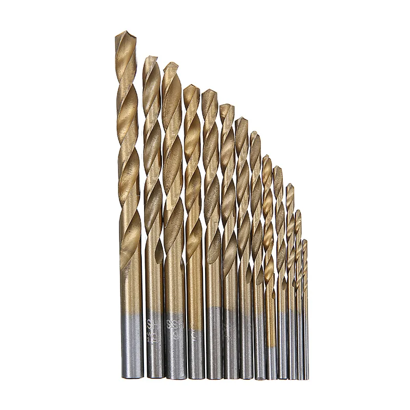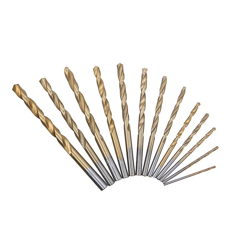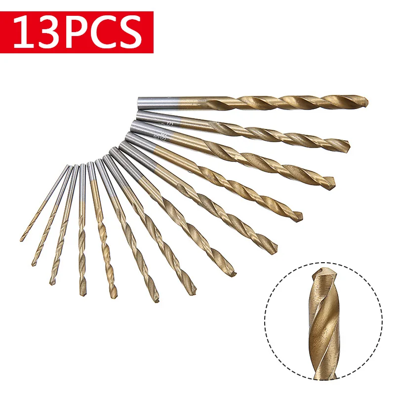 Набор миниатюрных спиральных Сверл из быстрорежущей стали с титановым покрытием, 13 шт., металлические сверла, Твердосплавные наконечники для деревообработки, набор пластиковых сверл 1,5-6,5 мм