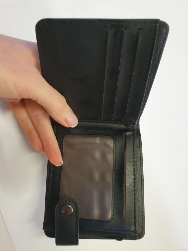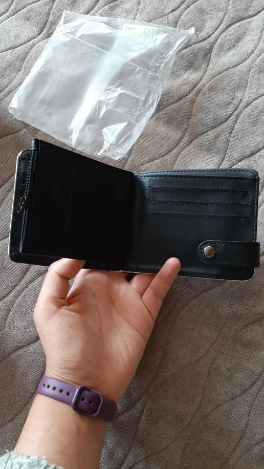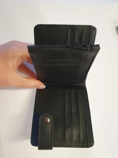 Pedido perfecto. Buena calidad, buen material, buen embalaje. Me encanta, son muy originales! Tiene para poner muchas tarjetas y los billetes caben perfectos. También tiene para monedas.