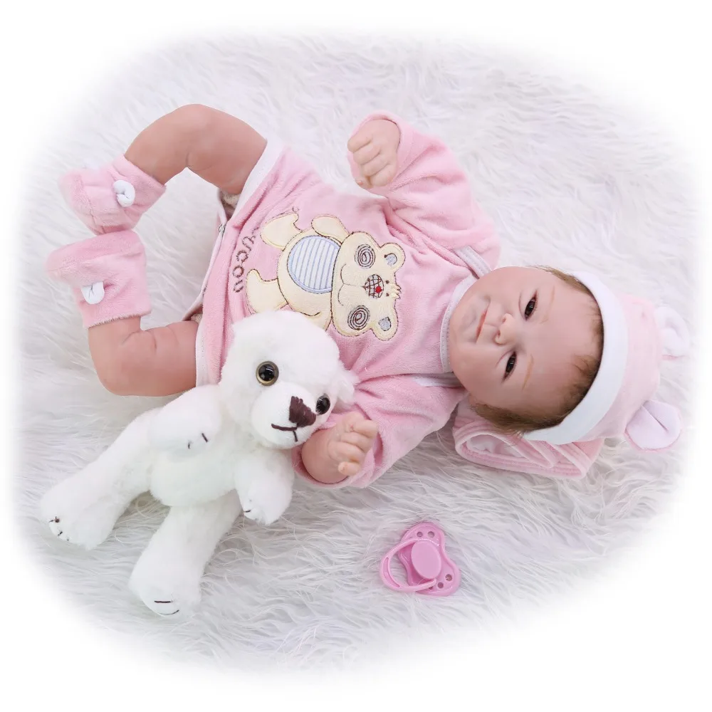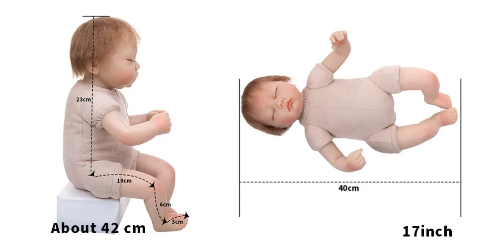 Голова, 3/4 конечности изготовлены из силиконового винила (корпус из ткани с хлопком PP). Импортированное мягкое виниловое сырье, нетоксичное; Кукольные конечности могут быть активными, они могут сидеть или лежать, мягкая силиконовая кукла не может войти в воду, не может стоять, говорить или питаться.