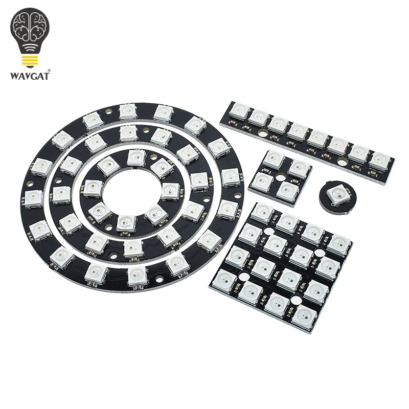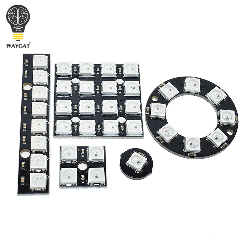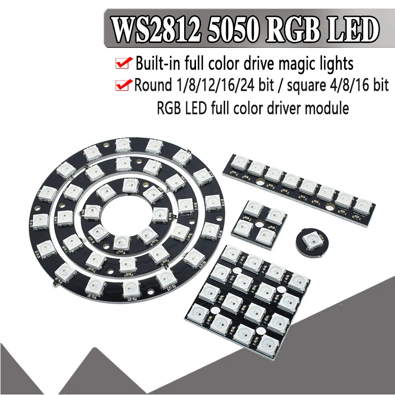 Модуль светодиодной панели WS2812, WS2812B, WS 2811, 5050, RGB, 5 В, 1 бит, 4 бит, 8 бит, 12 бит, 16 бит, 24 бит, Радужный светодисветодиодный, точный