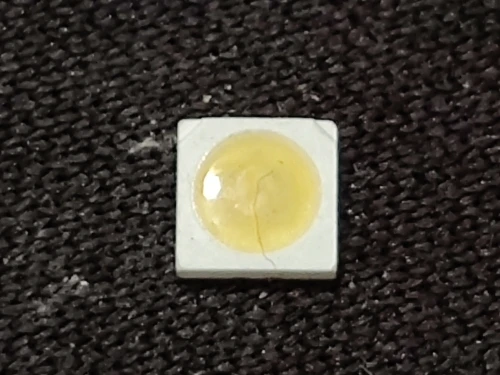 Хорошее качество большие кристаллы, снизу светика есть маркировка, цвет люминофора более желтый, но на глаз по свечению разницы практически незаметно чем с более светлым люминофором.
