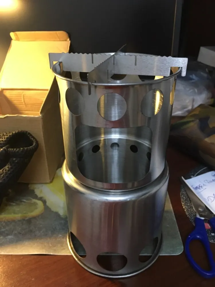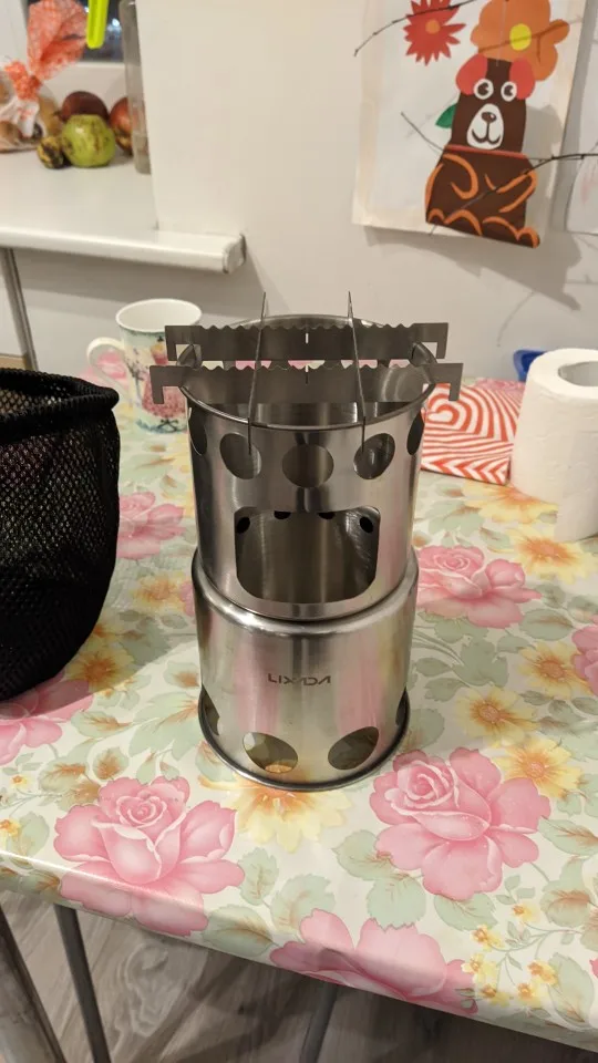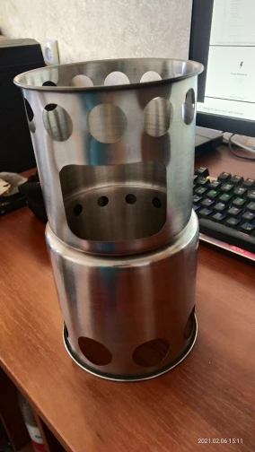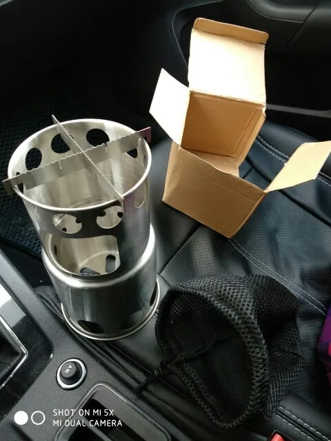 Использую обычно газ. Сегодня решил попробовать печку. Печка удивила. Неделю шли дожди. В лесу всё мокрое. Нашел чуть менее мокрою одну палку и несколько тонких веток. Думал останусь без обеда. Для растопки использовал ватный диск с парафином и всё разгорелось. На одной загрузке горит 10-15 минут. При заказе думал какой размер взять. Взял большего размера и доволен. Коробка (посылка) размером 130х130х130 мм. Печка в сложенном состоянии компактная. Диаметр 125 мм (5 дюймов), высота 110 мм. При максимальном огне немного коптила. А так тяга хорошая и деревяшки сгорели до белого пепла. Внутрь печки при транспортировке положил в чехле огниво с ножиком и растопку. В итоге ничего не гремит. Печкой доволен. Продавца рекомендую. Доставка в Словакию с Китая 1 месяц.