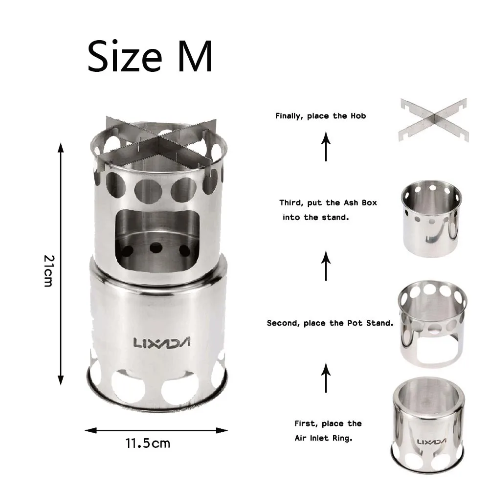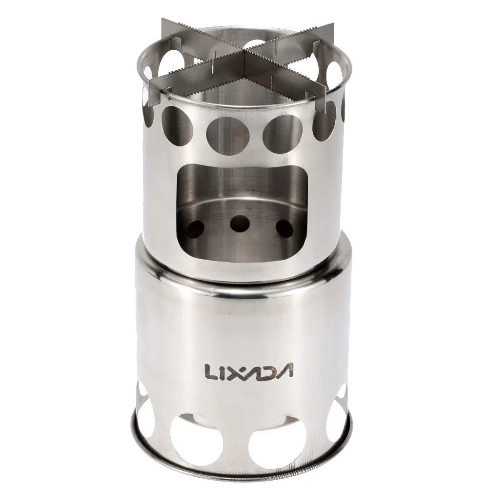 Портативная дровяная печь Lixada, печь для пикника, из нержавеющей стали