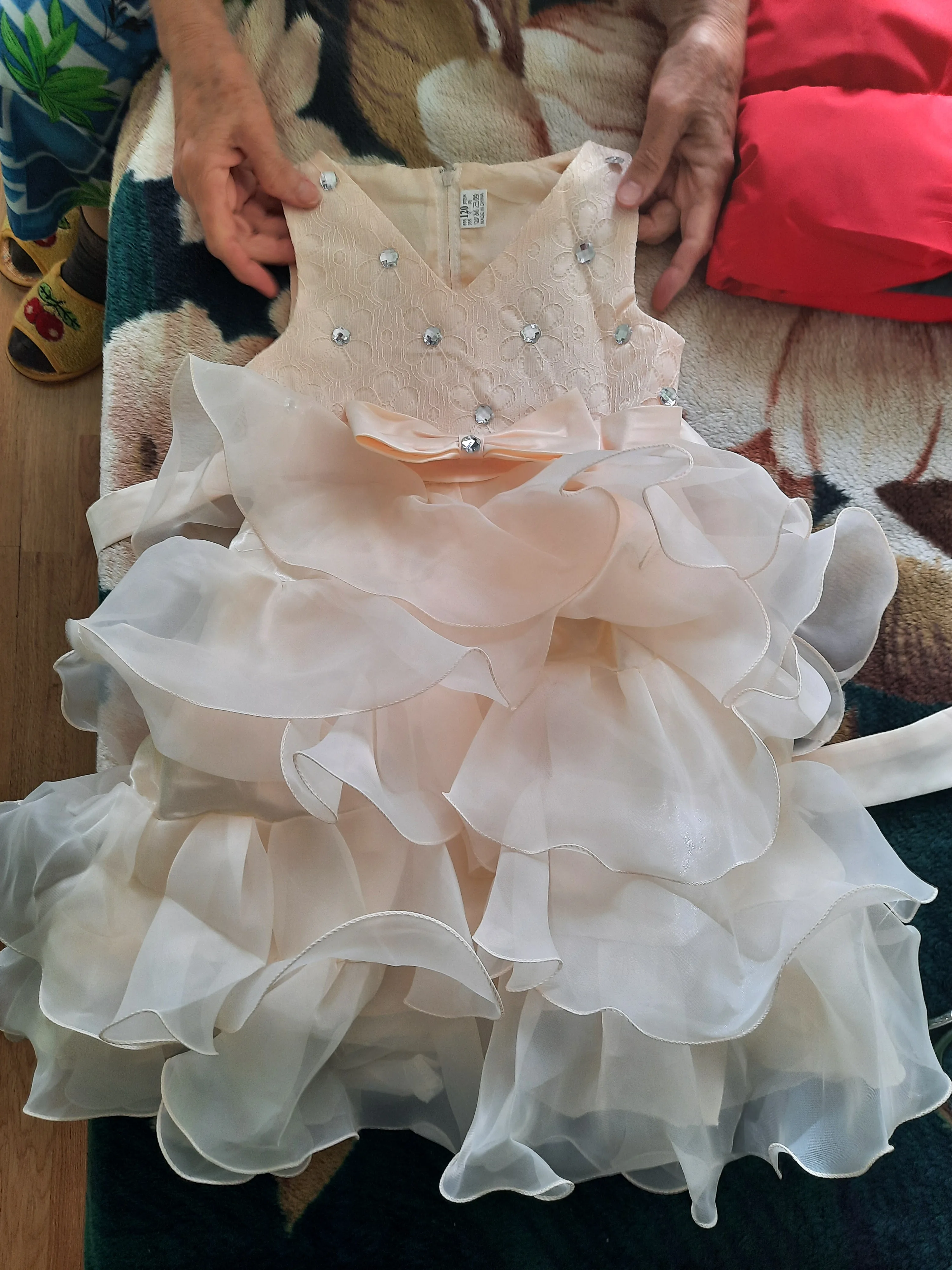 Прекрасное платье, как на фото выглядит в реальности. Думала не такое пышное как на картинке будет. Нам всем очень понравилось. Доставка тоже супербыстрая! Взяла 6 размер на 4 года. Даже сейчас можно одевать, просто будет платье в пол! :-)