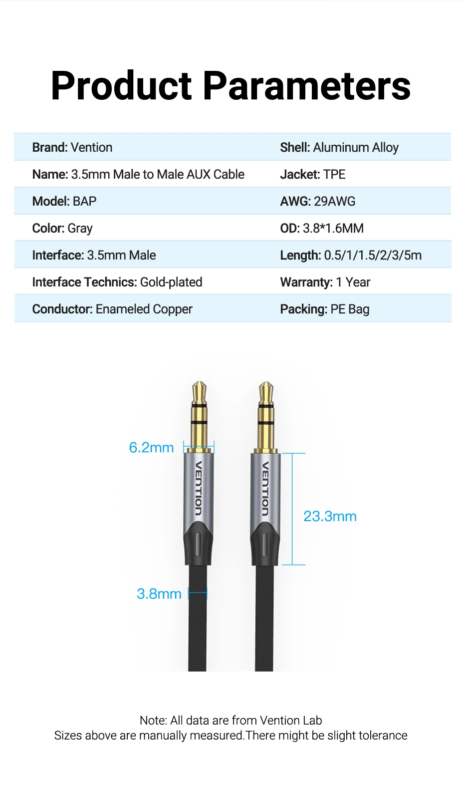 Aux-кабель Vention 3,5 мм, штекер-штекер 3,5 мм, аудиокабель для JBL, Xiaomi, Oneplus, наушников, кабель динамика, автомобильный Aux-шнур