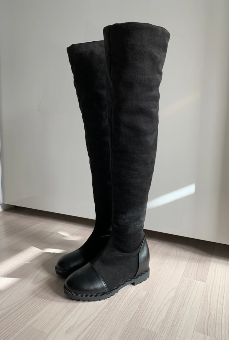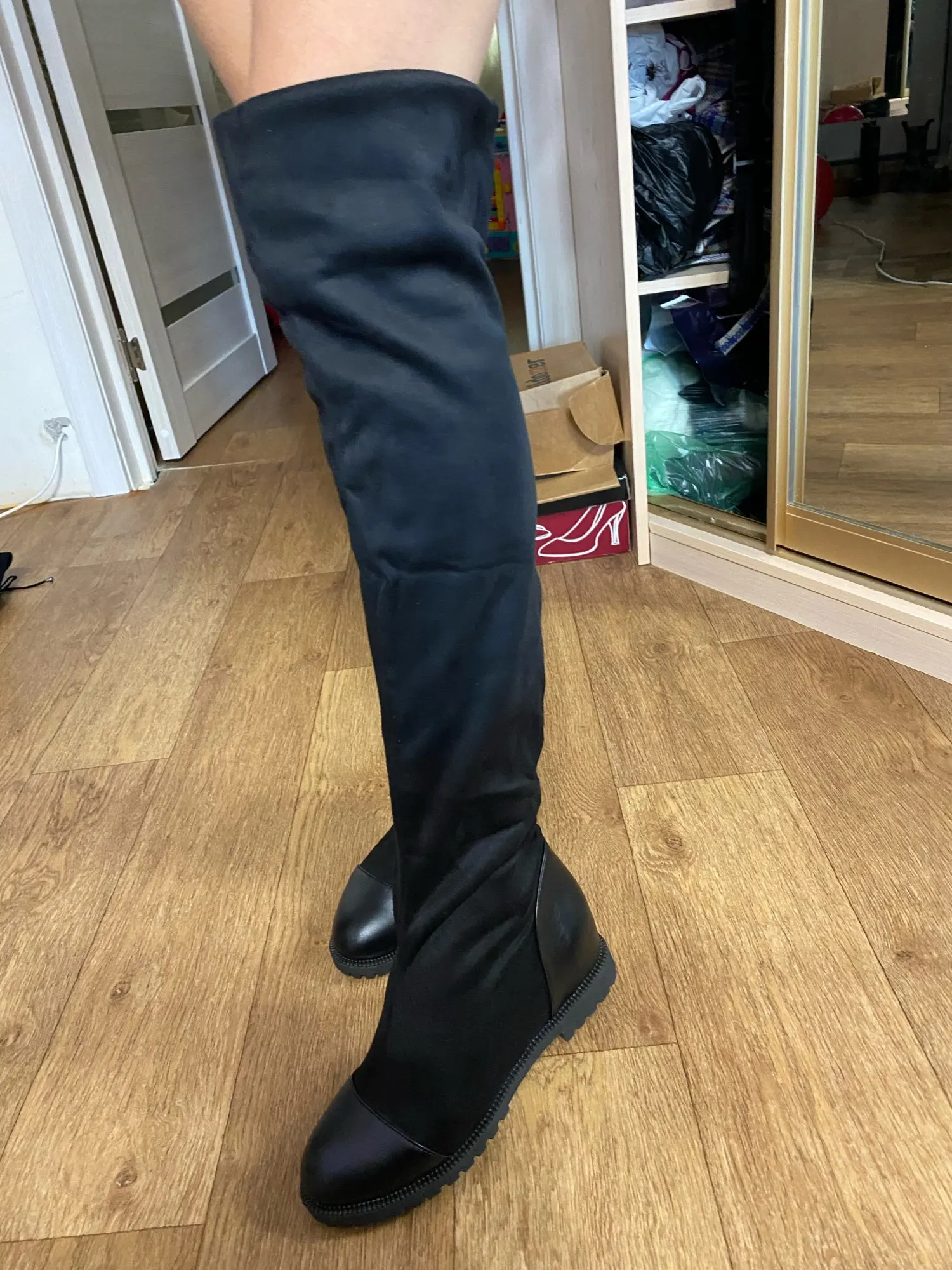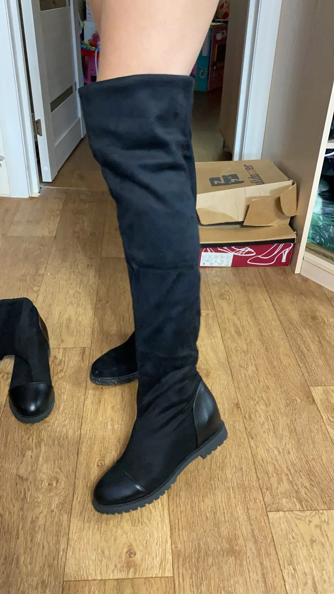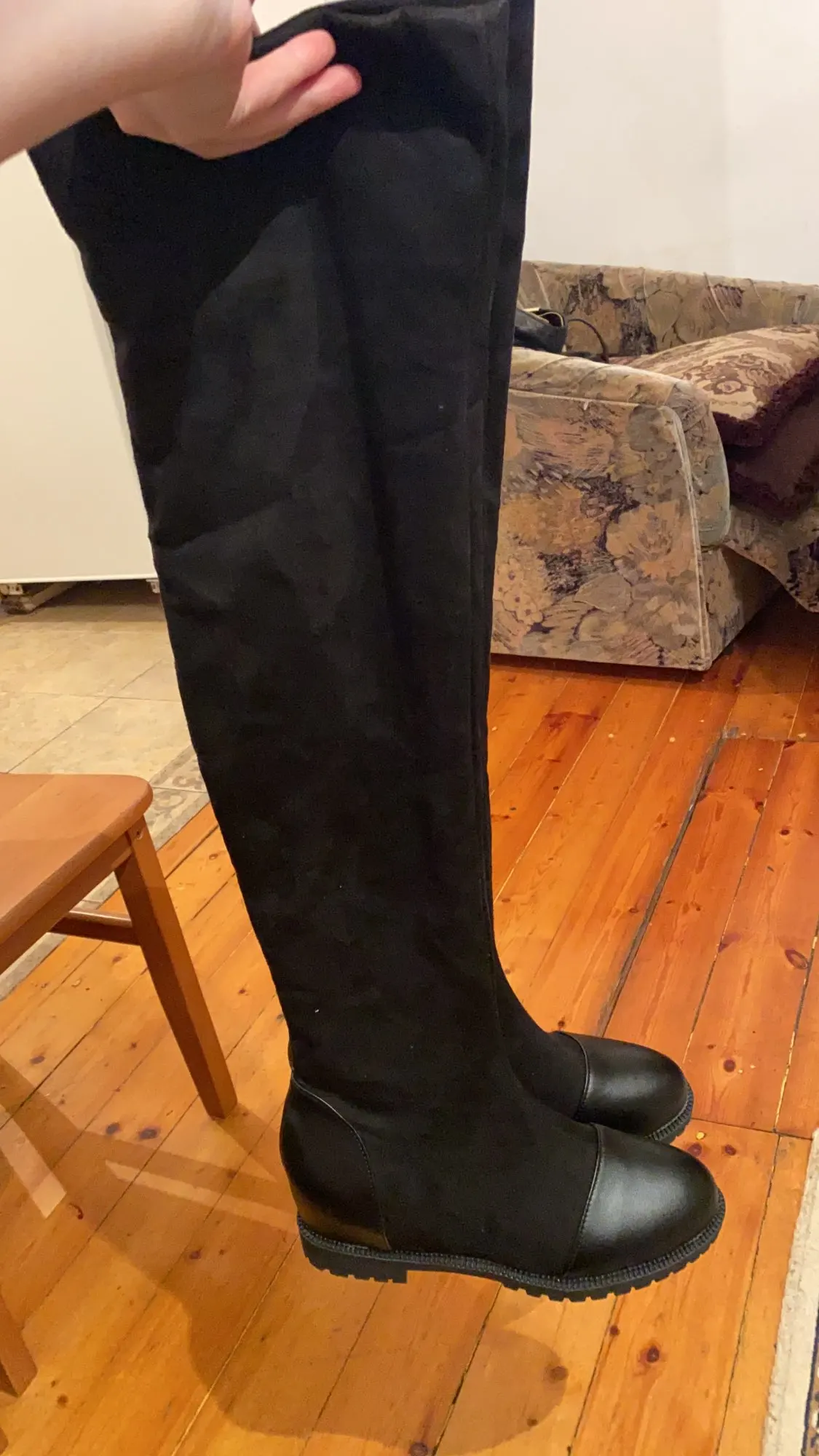 Это лучшие сапоги чулки которые я брала на али! Швы ровные, ткань приятная, легко тянется ( 41 см голень) , колодка удобная, на рост 164 закрывают колено полностью. Брала на размер больше для носка. Внутри приятные, утеплённые. Надеваются легко на высокий подъём, обычно без молнии или шнурка обувь не беру, а эти прям легко надеть. Очень удобные. Смотрятся идеально! Спасибо!