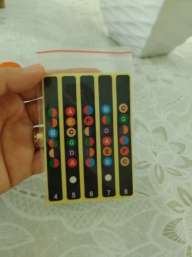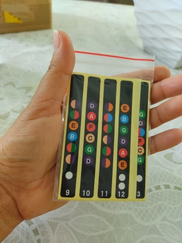 Отзыв сделаю из двух частей 1. работа продавца и 2. мои впечатления Что касательно обслуживания, то продавец добросовестный все быстро отправил. Качество - хорошее, товар полностью соответствует описанию ставлю высшую оценку. Теперь мои собственные впечатления от наклеек. Несмотря на хорошее качество и исполнение. Мне они показались бесполезными. За струнами их плохо видно, все пестрит и путает своими кружочками. Бликуют глянцевой поверхностью. Трудно ориентироваться в ладах потому, что все стало одинаково пестрым. Скорее всего попробую с ними некоторое время потренироваться а потом уберу, так как сейчас они мешают. Так же на обратной стороне грифа постоянно рука за них цепляется. предвижу, что скоро они сами отклеятся от постоянных зацеплений. Подробнее можете посмотреть про все подобные гитарные покупки на канале PokuPashka: обзоры интересных товаров. там будет более наглядно в видео формате. Это мое личное мнение. кому то может очень помогут в обучении.