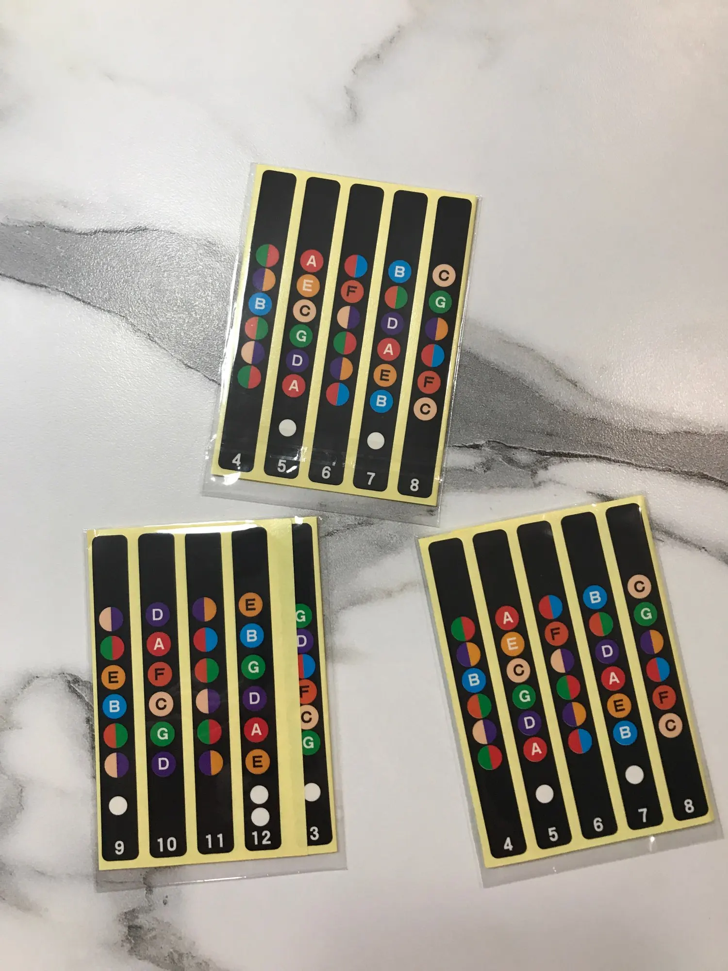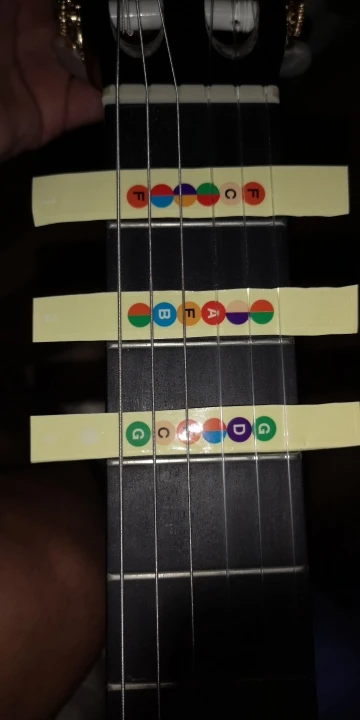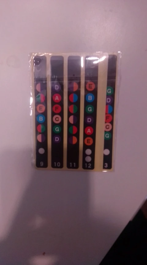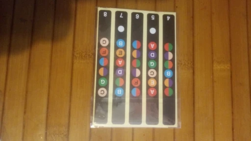 приклеились к грифу хорошо, осталось привыкнуть к цветам нот. насколько эффективны в изучении - покажет время