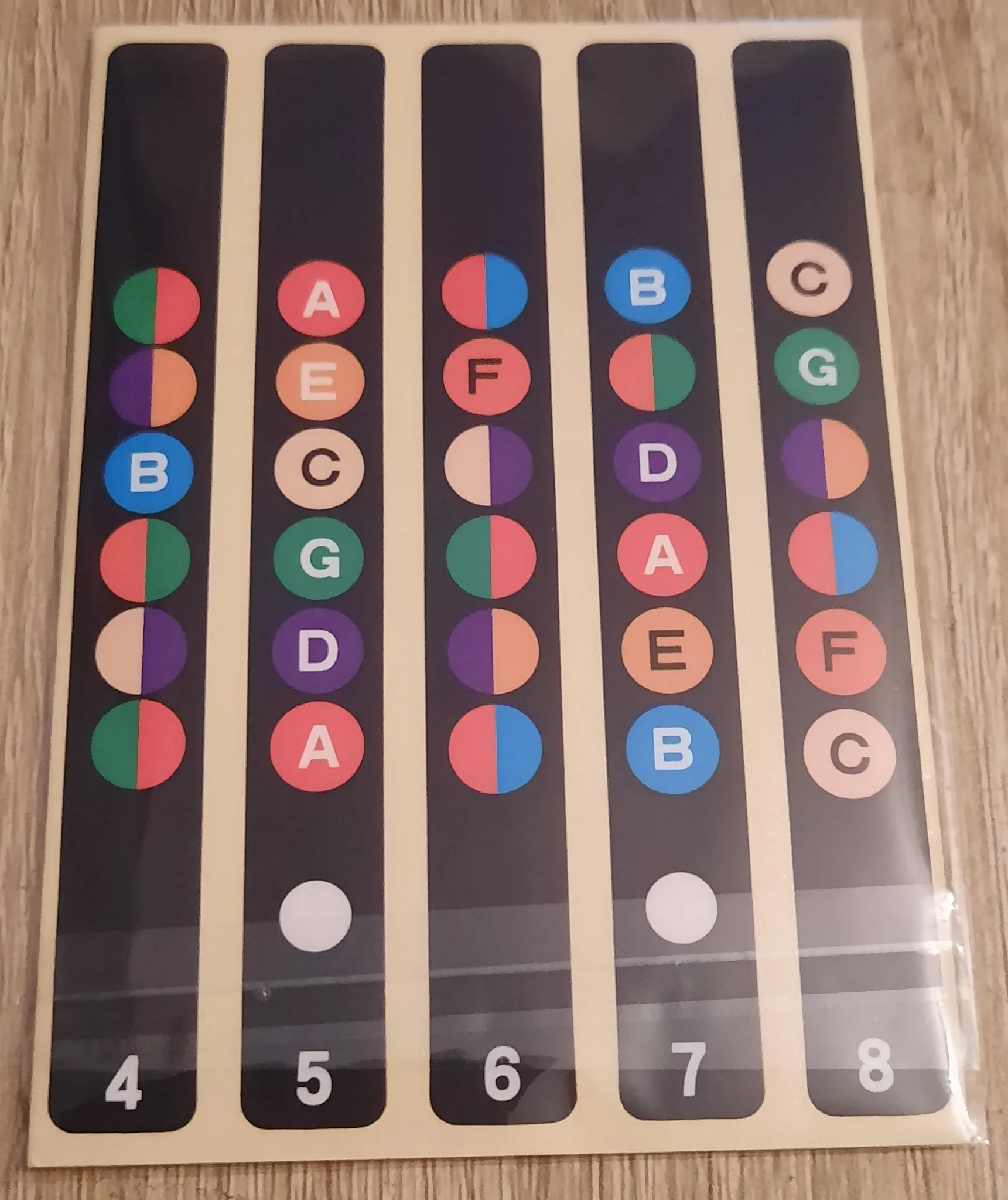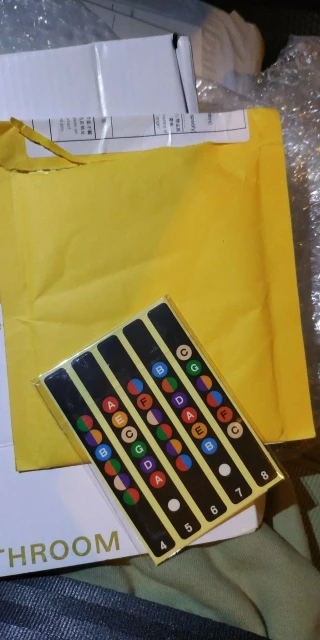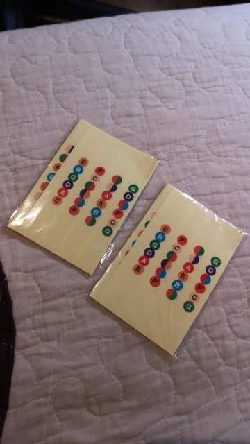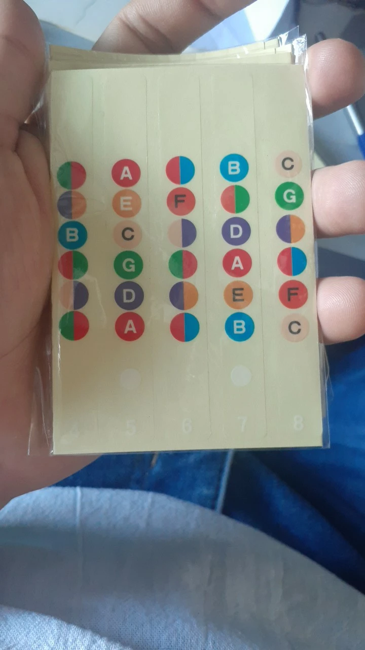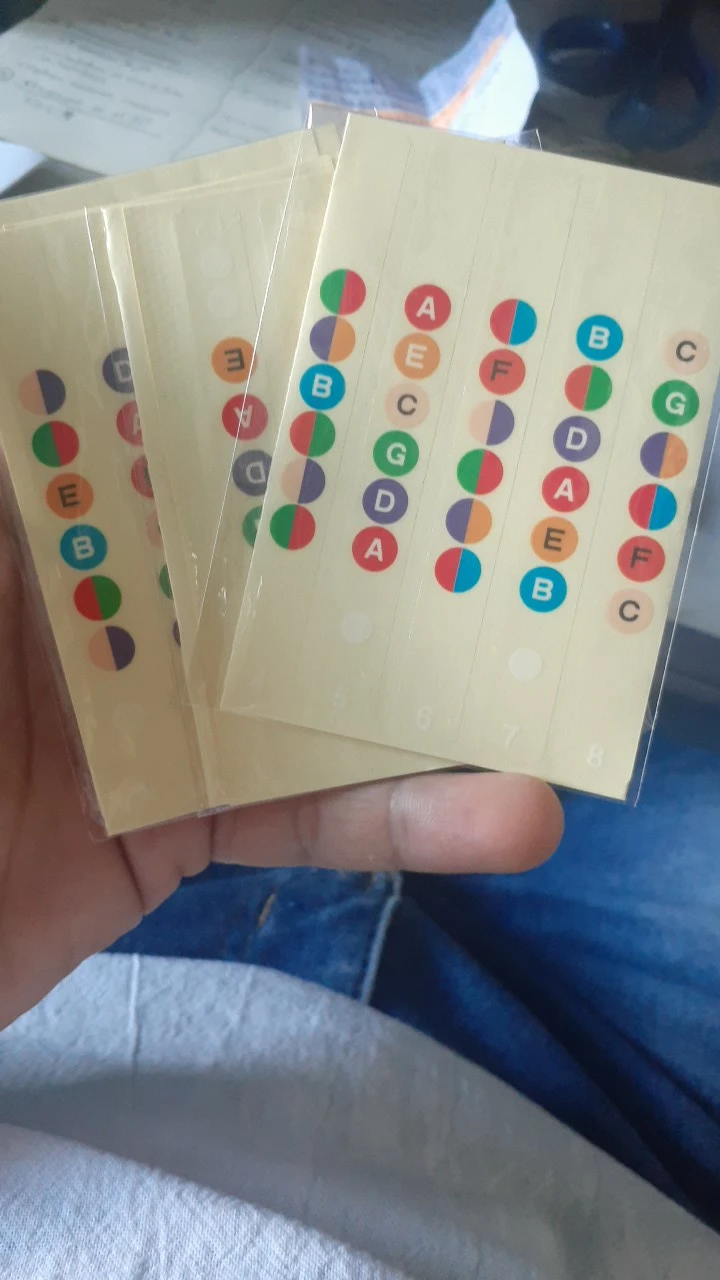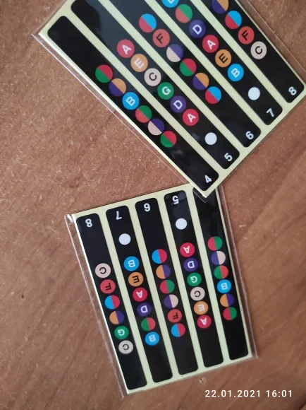 Хороший клей, принт виден так же хорошо, наклеил их на леспол, хоть теперь не думаешь где какая нота) для новччков просто тою