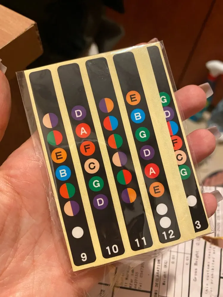Гитарная грифельная доска, этикетки на карты, наклейки на гриф, наклейки для начинающих гитар. Все было хорошо, наклейки в хорошем размере для акустической гитары, также очень легко приклеивать их в Гриф. Доставлено вовремя, не было повреждений. Эти наклейки помогут каждому новичку.