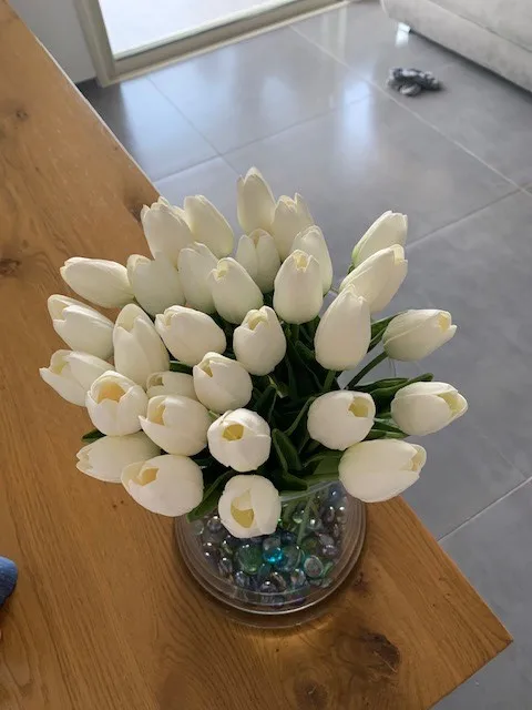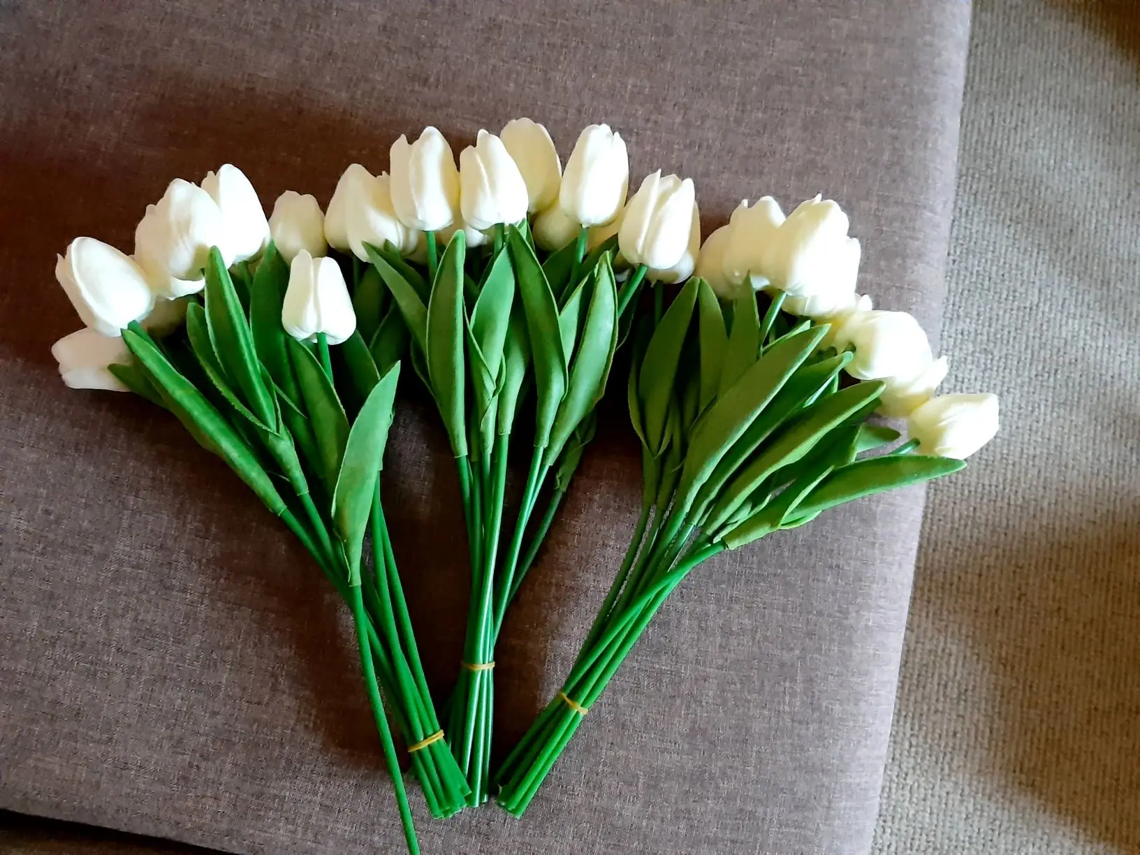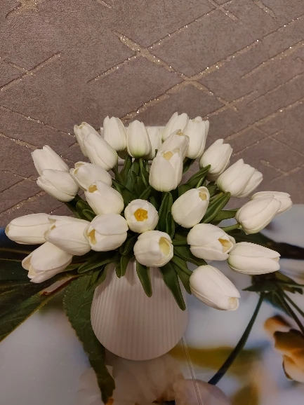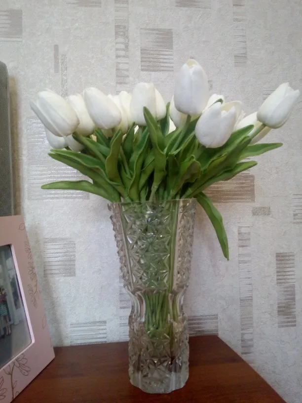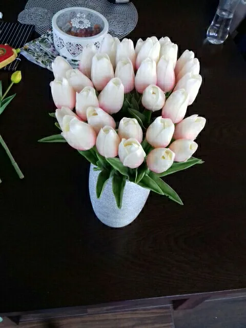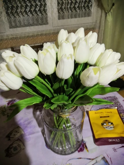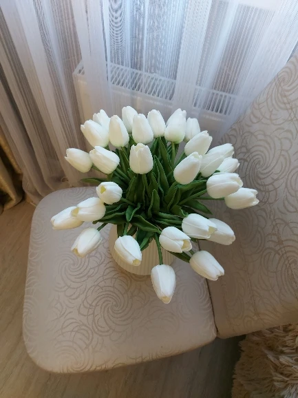 Второй раз заказываю эти тюльпаны, сказать что я в восторге это ничего не сказать) они очень похожи на настоящие. Единственное из-за транспортировки всегда один или два из бутонов были немного деформированны и в первом и во втором заказе, но это не критично так как все можно подклеить клеем и ничего даже заметно не будет) одна из лучших покупок на али. Спасибо большое продавцу) Рекомендую