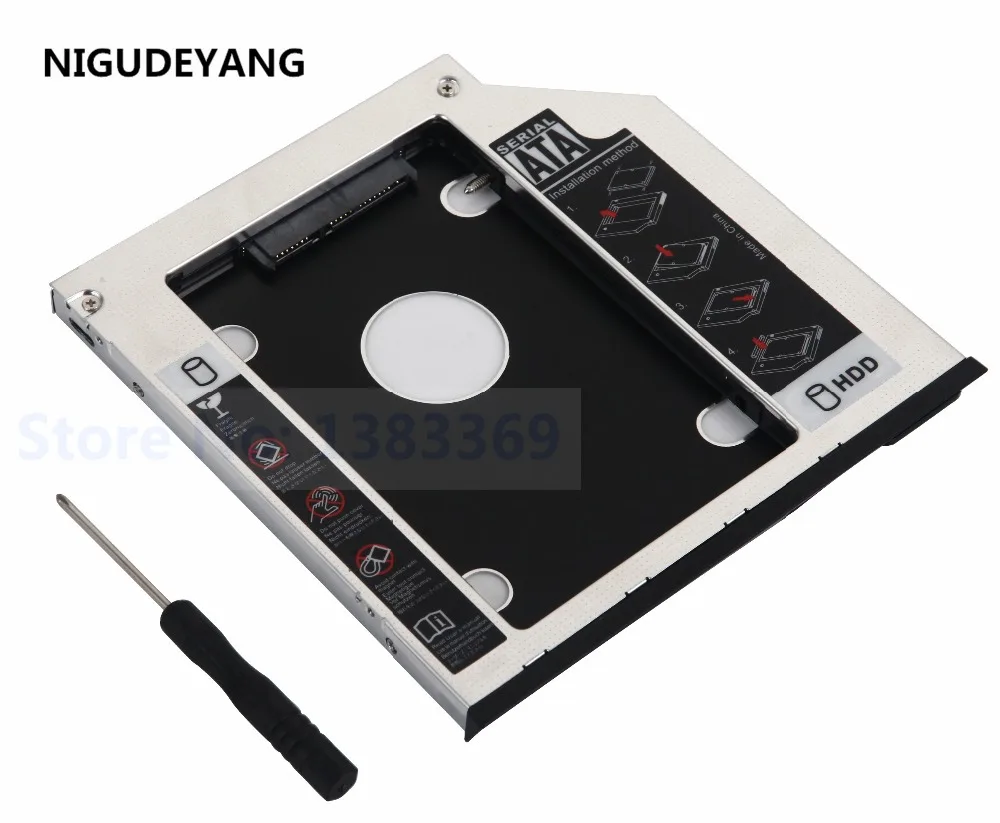 Встроенные стопорные винтыУпростите установку второго жесткого диска в caddy.Алюминиевая сумкаЧто делает его светильник ким, прочным и обеспечивает охлаждение жесткого диска; Внутренняя часть caddy имеет пластиковый держатель для поглощения шума и вибраций От 2-го жесткого диска/SSD;