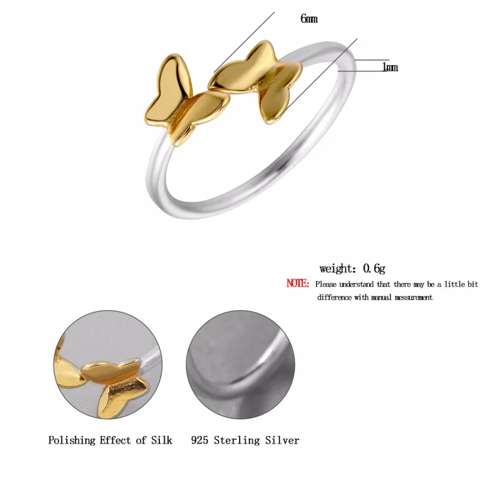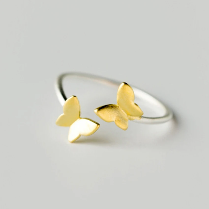 Kinitial стерлингового серебра 925 золотое кольцо бабочка открытым кольцо midi мизинец палец кольца anillo для леди женщин рождественские украшения