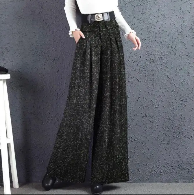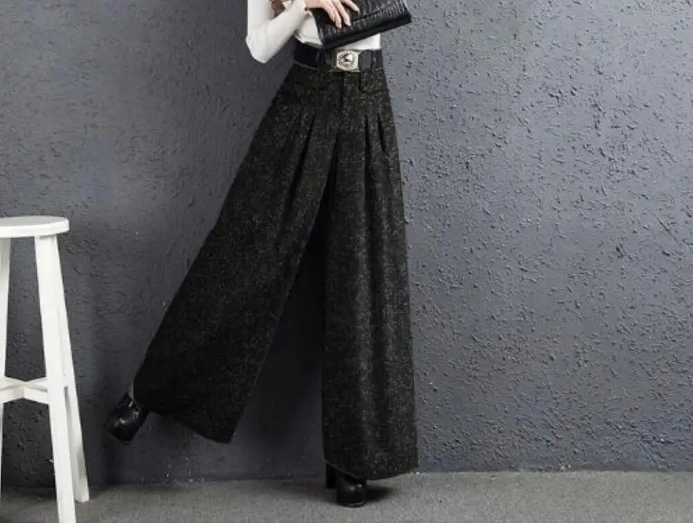 Брюки палаццо осень-зима новые южнокорейские тканевые прямые брюки с широкими штанинами серые женские шерстяные брюки