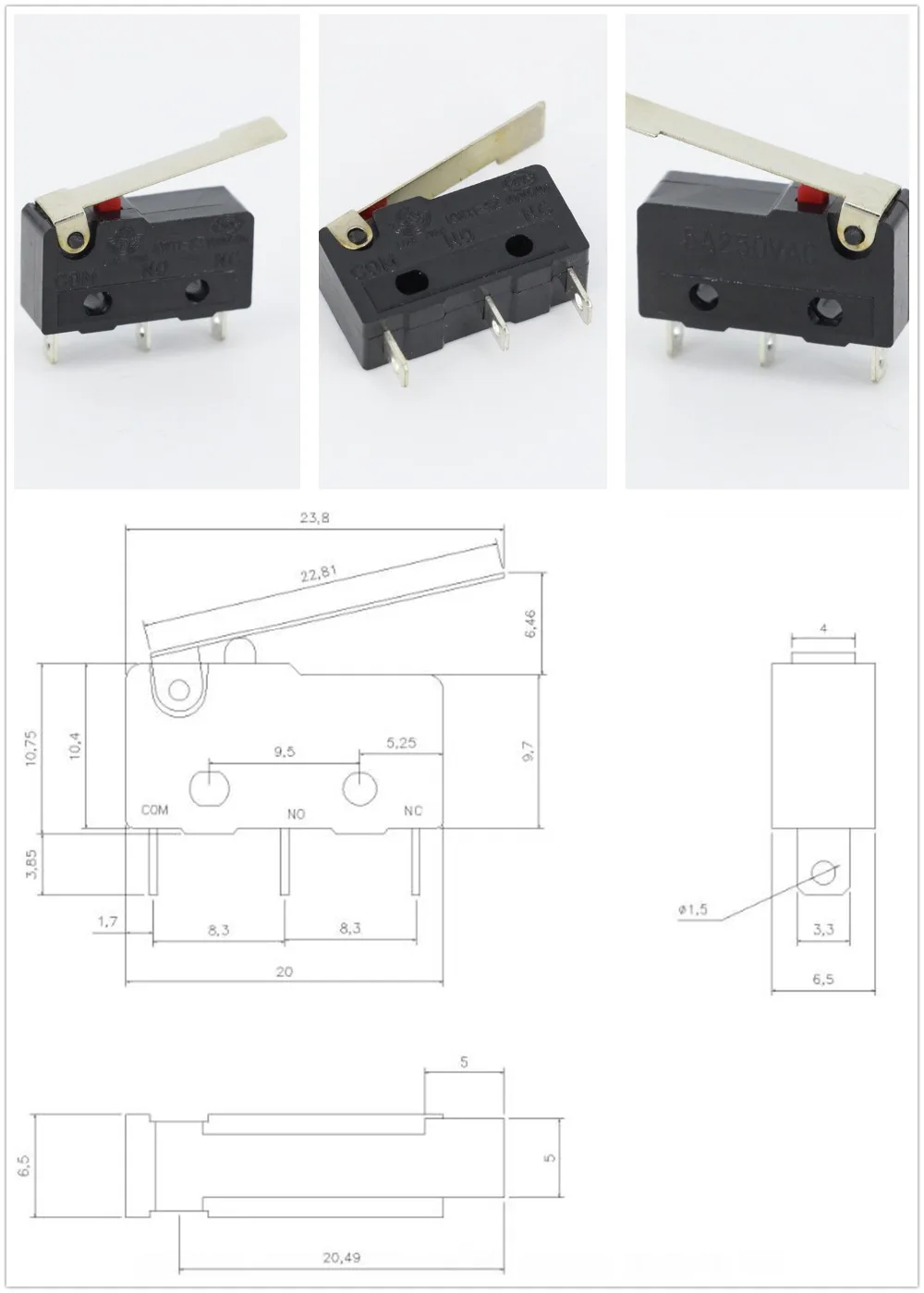 Хорошие микропереключатели. Одна пара контактов нормальноразомкнутые, другая - нормальнозамкнутая, с одним общим контактом. Фиксация чёткая, срабатывают упруго при нажатии-отпускании с очень небольшим усилием. Для низковольтных схем сгодятся.