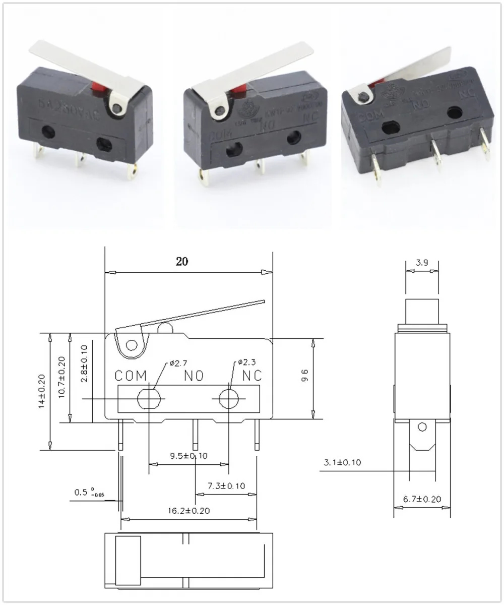 Концевой выключатель 10 шт.лот, 3 контакта2 контакта, высокое качество и длительный срок службы, новинка, 5 А, 250 В переменного тока, фотовыключатель, тактовый выключатель ВКЛ.ВЫКЛ.