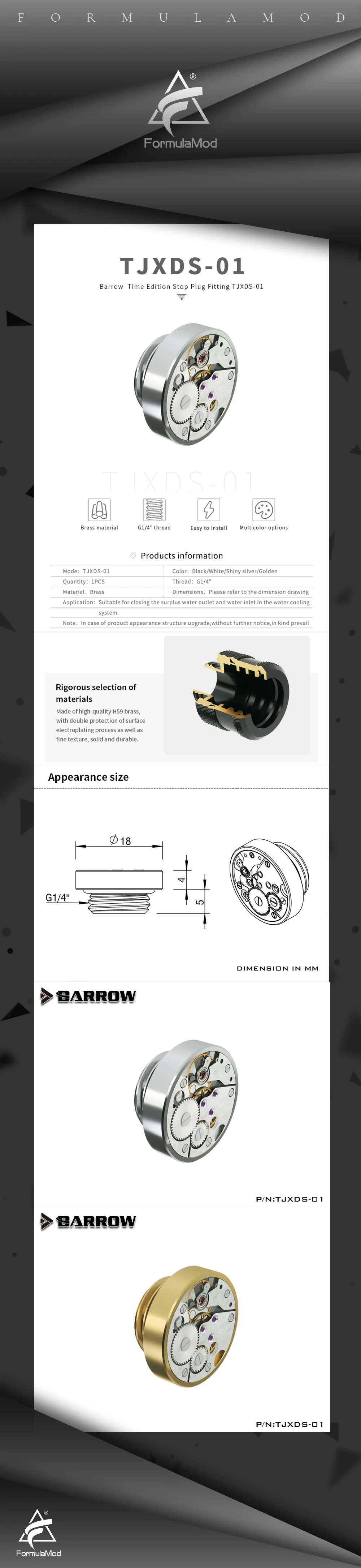 Барроу Ограниченная серия G1 4 "временная Серия Рука затянуть замок уплотнительная вилка водяного охлаждения компьютера фитинги TJXDS-01