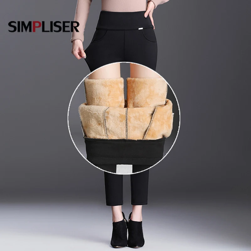 Женские Зимние флисовые брюки-карандаш, черные, красные, синие длинные брюки, размера плюс