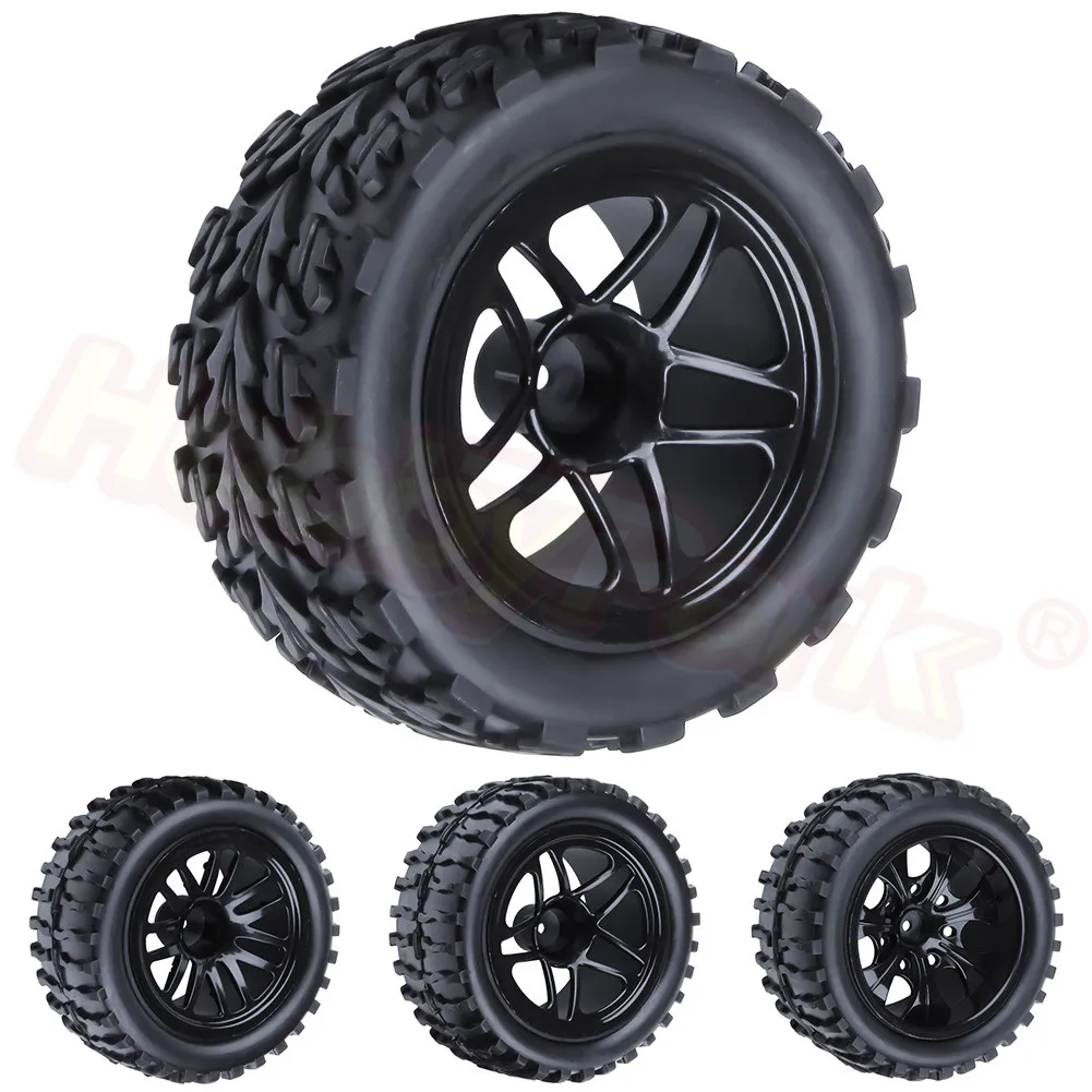 4 шт.лот резиновые RC шины для грузовиков и обода колеса с нейлоновой гайкой M4 для превышения Infinity EP 110 Scale, электрические детали монстра