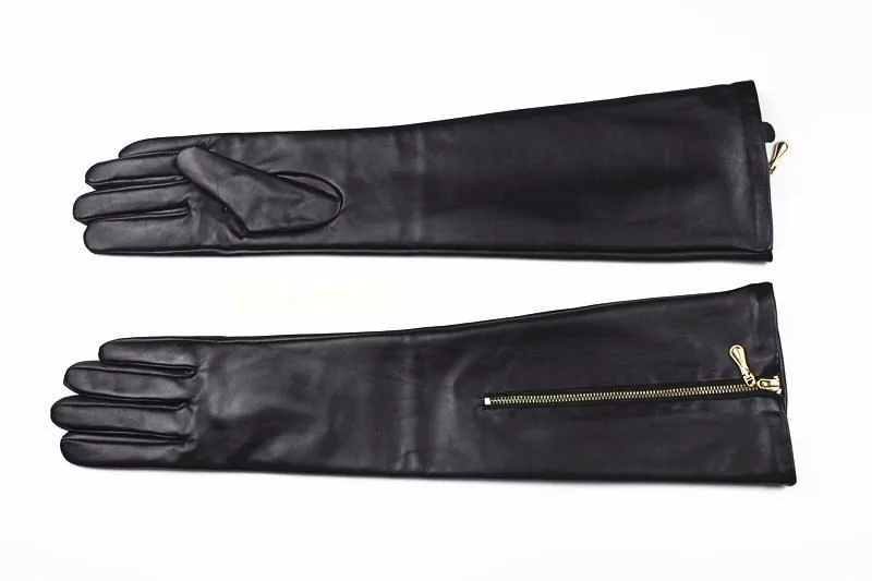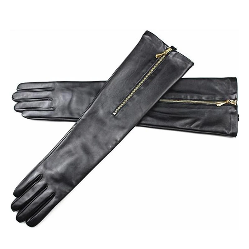 Женские длинные перчатки из овечьей кожи, на молнии, с кашемировой подкладкой
