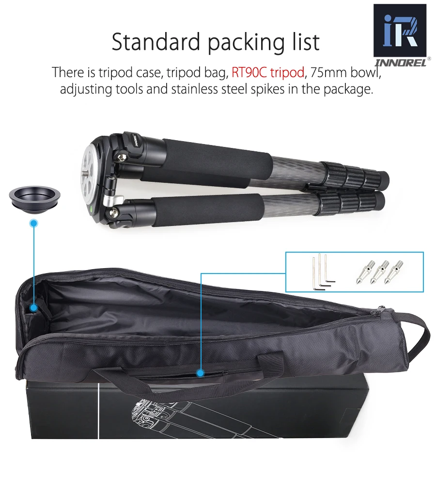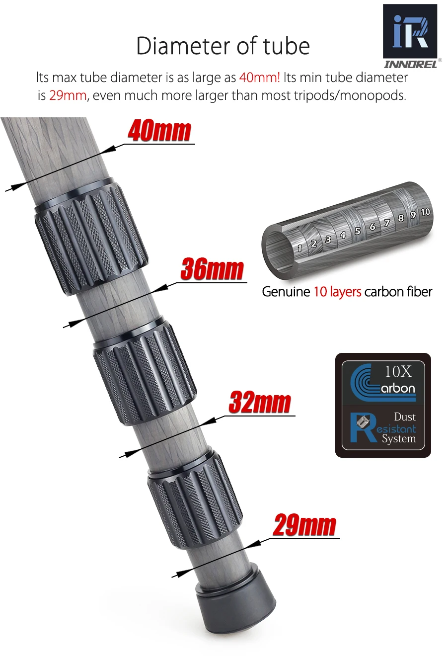 Профессиональный штатив RT90C(LT404C) из углеродного волокна, для наблюдения за птицами, для тяжелых условий эксплуатации, с трубкой 40 мм, нагрузкой 40 кг, адаптером 75 мм