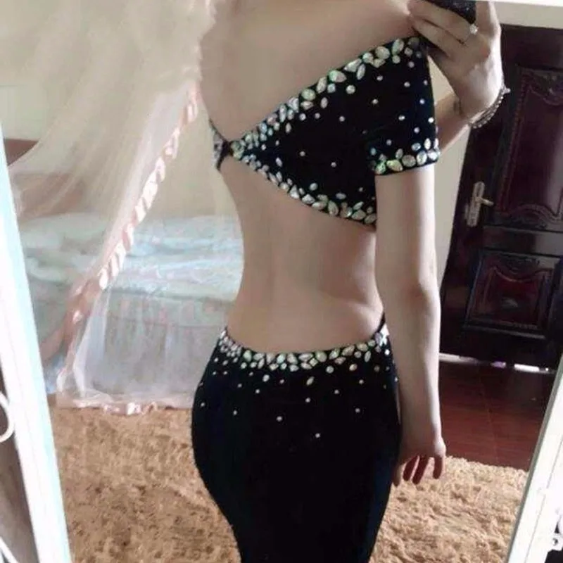 Женское вечернее платье-русалка, Черное длинное платье с кристаллами, лето 2019
