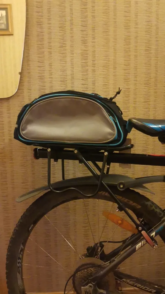 Сумка выглядит отлично. На багажник села хорошо. Доставка очень-очень долгая.
