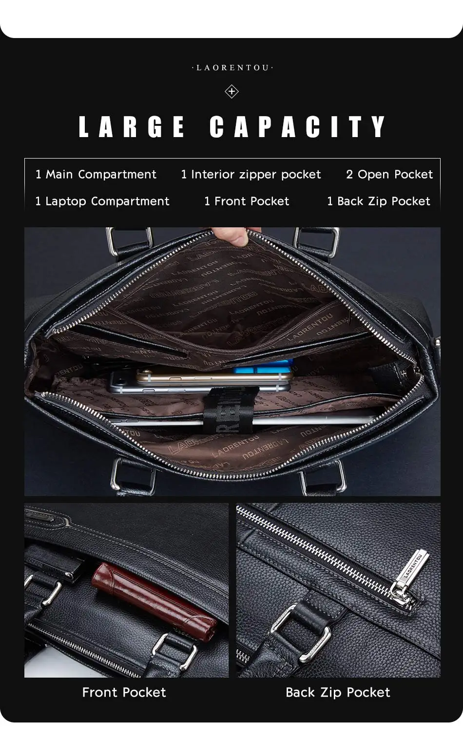 Портфель LAORENTOU мужской из натуральной кожи, сумка для ноутбука большой вместимости, стильная простая сумка через плечо