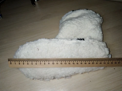 Заказ 06 сентября, в Беларуси 02 ноября, на почте в Минске 18 ноября. Трек отслеживался. Доставка бесплатная. Товар упакован в белый почтовый пакет без уплотнителя, дошел без повреждения. Обувь сделана из искусственного тонкого двустороннего меха, который сыпется, просвечивается. Подошва из какого-то плотного материала с мелкими пупырками похожими на силикон (наверное чтобы не скользили). Длина стопы 24,0-24,3 см.Качество среднее.