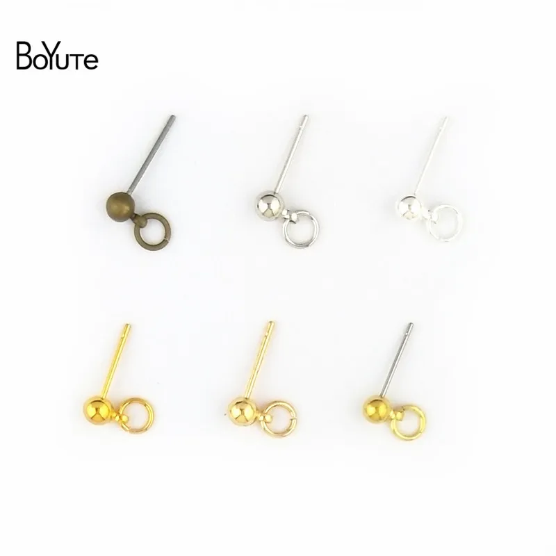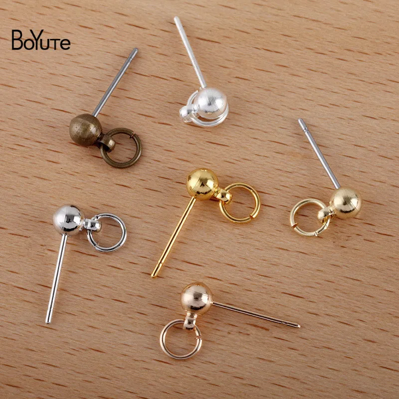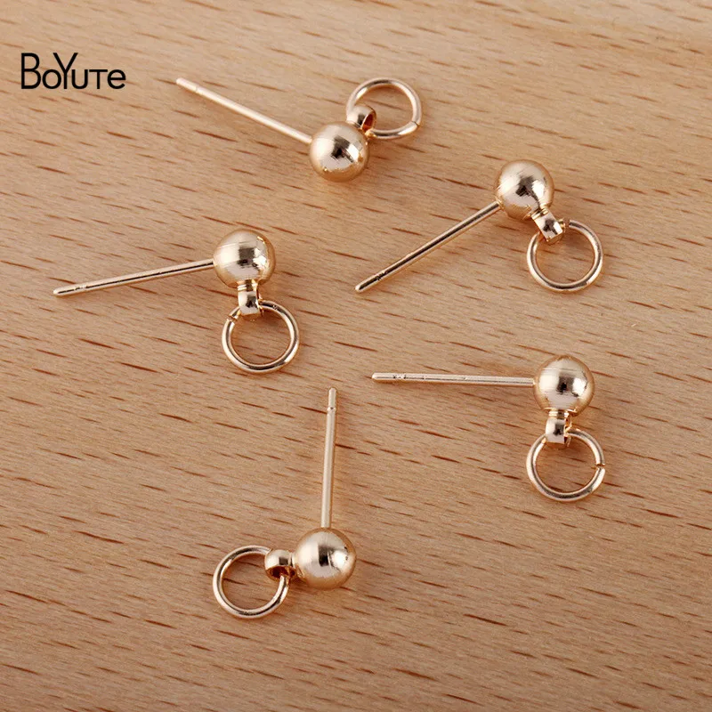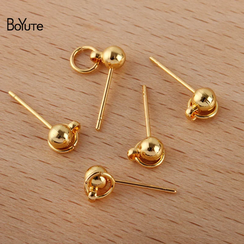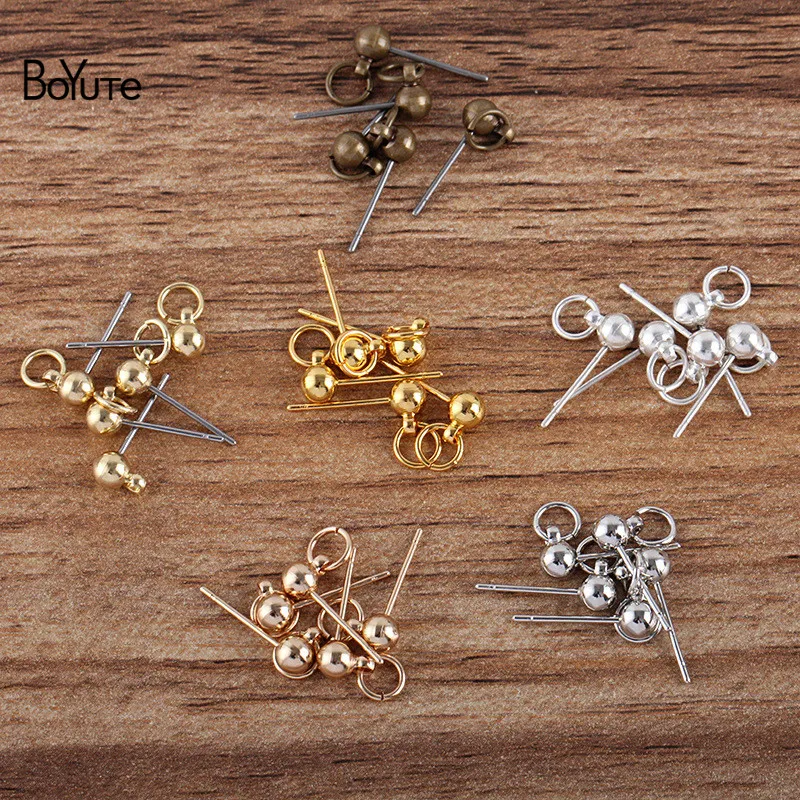 BoYuTe (50 шт.лот) 4*13 мм Металлические латунные серьги-гвоздики шарики с колечком сделай сам булавки серьги аксессуары