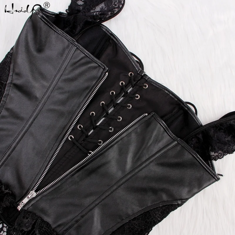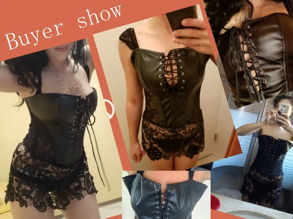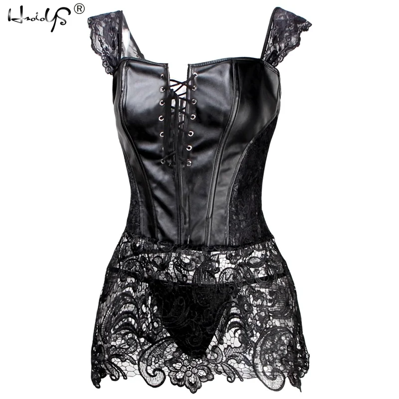 Соблазнительное нижнее белье с комплектами стрингов, Женский корсет из искусственной кожи и кружева в стиле бурлеск, стимпанк, готическое бюстье на талии, женское нижнее белье