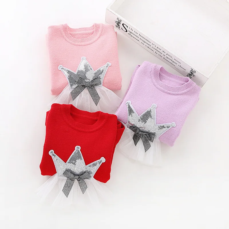 Новинка 2021, модная детская одежда, свитер для девочек 2 лет, пуловер с круглым вырезом, свитеры 8025