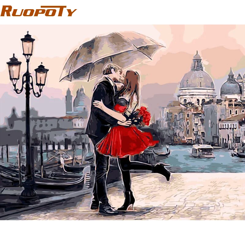 RUOPOTY рамка романтический поцелуй любимый DIY картина по номерам пейзаж картина маслом Современная Настенная картина для свадебного украшения