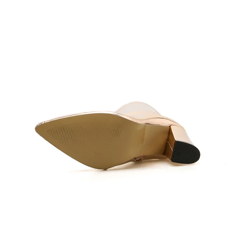 Женские ботильоны серебристого и золотого цвета с острым носком, бо...