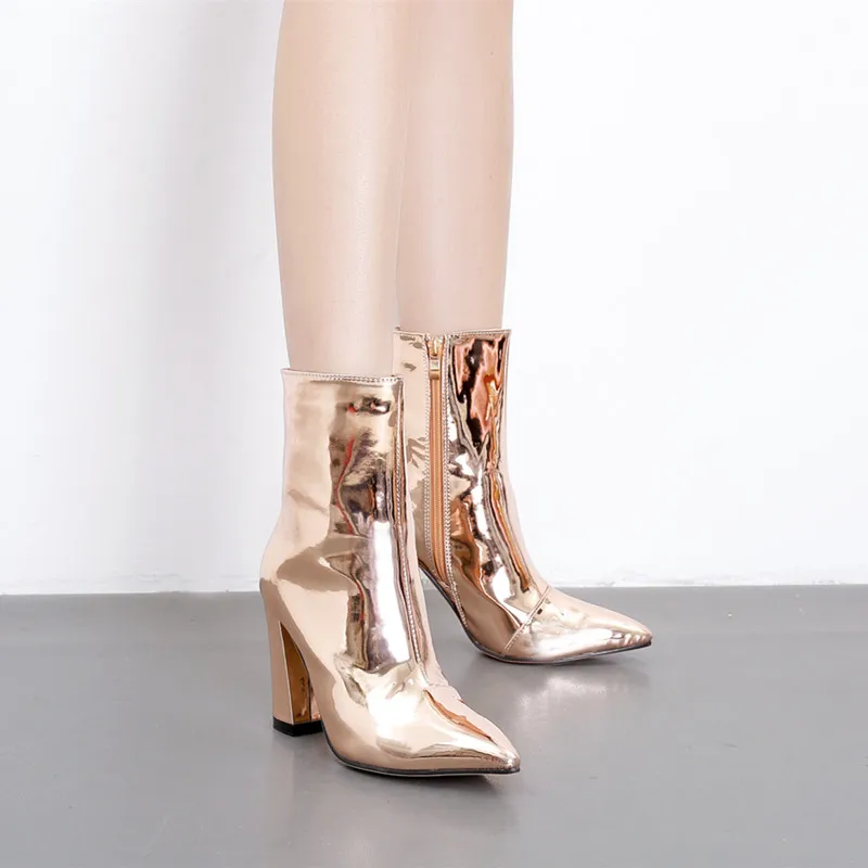 Модные женские ботильоны из лакированной кожи золотого и серебряног...